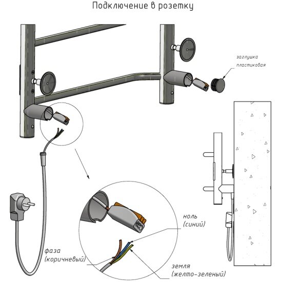 | Вид подключения | скрытое электрическое соединение, электропровод с вилкой |