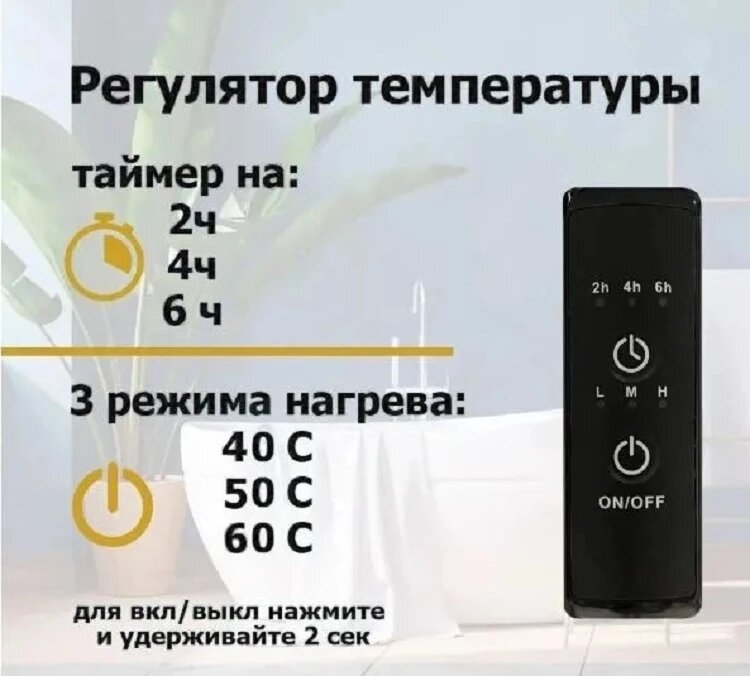 | Особенности | автоотключение при нагреве, кнопка включения/выключения, с таймером, терморегулятор |