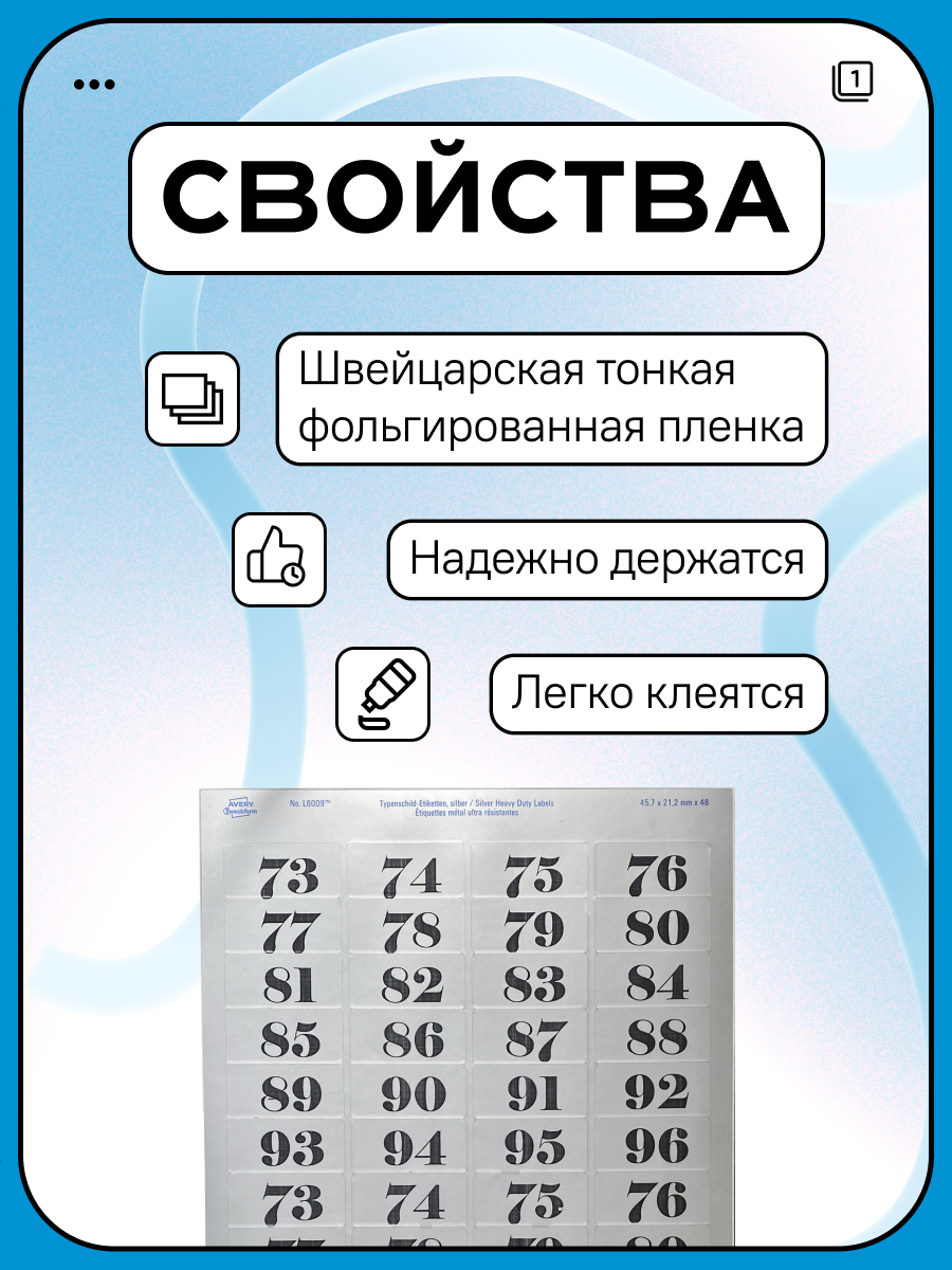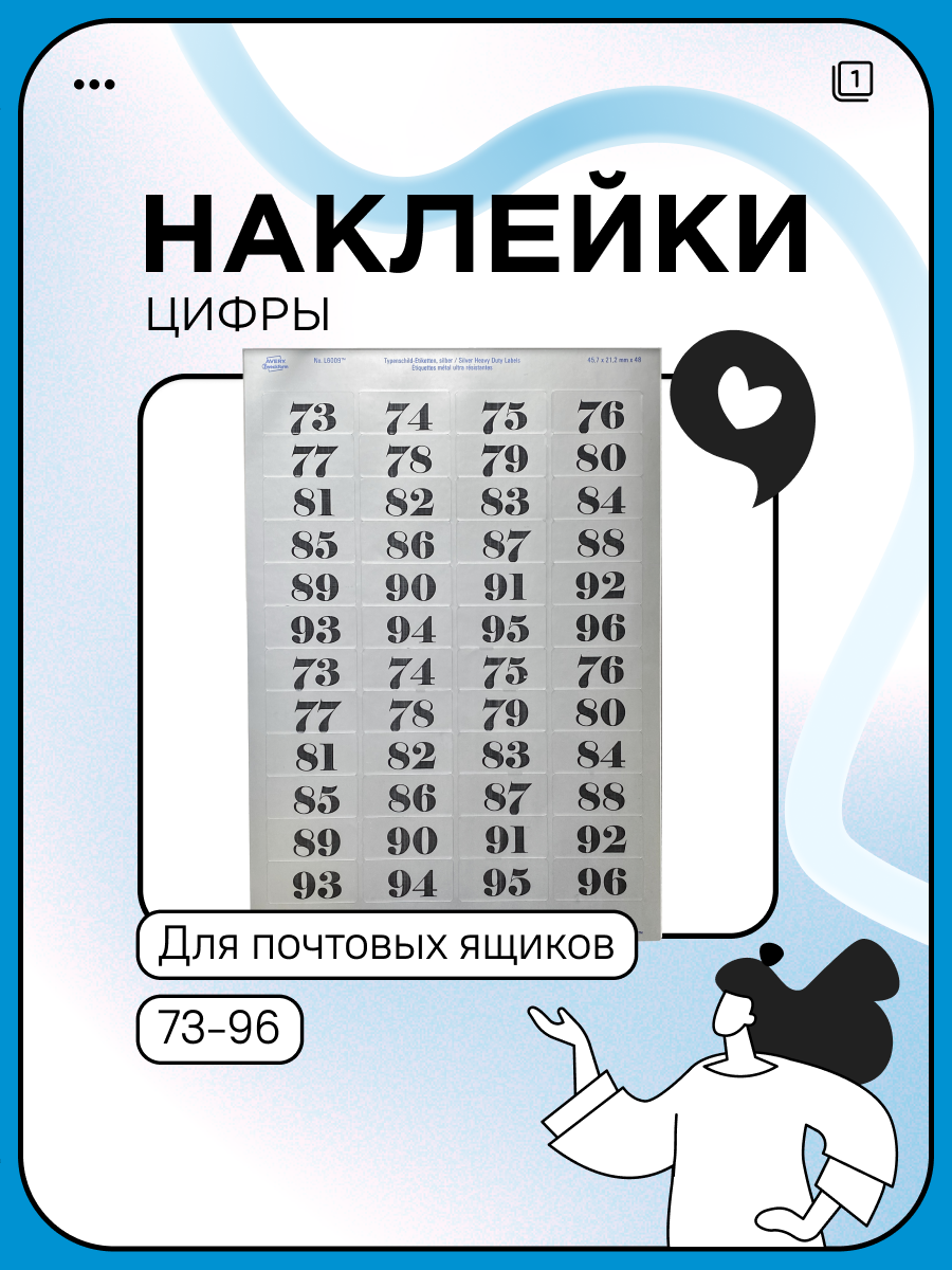 Номера квартир на почтовый ящик 24 шт. (73-96), наклейки, серебро интересное: