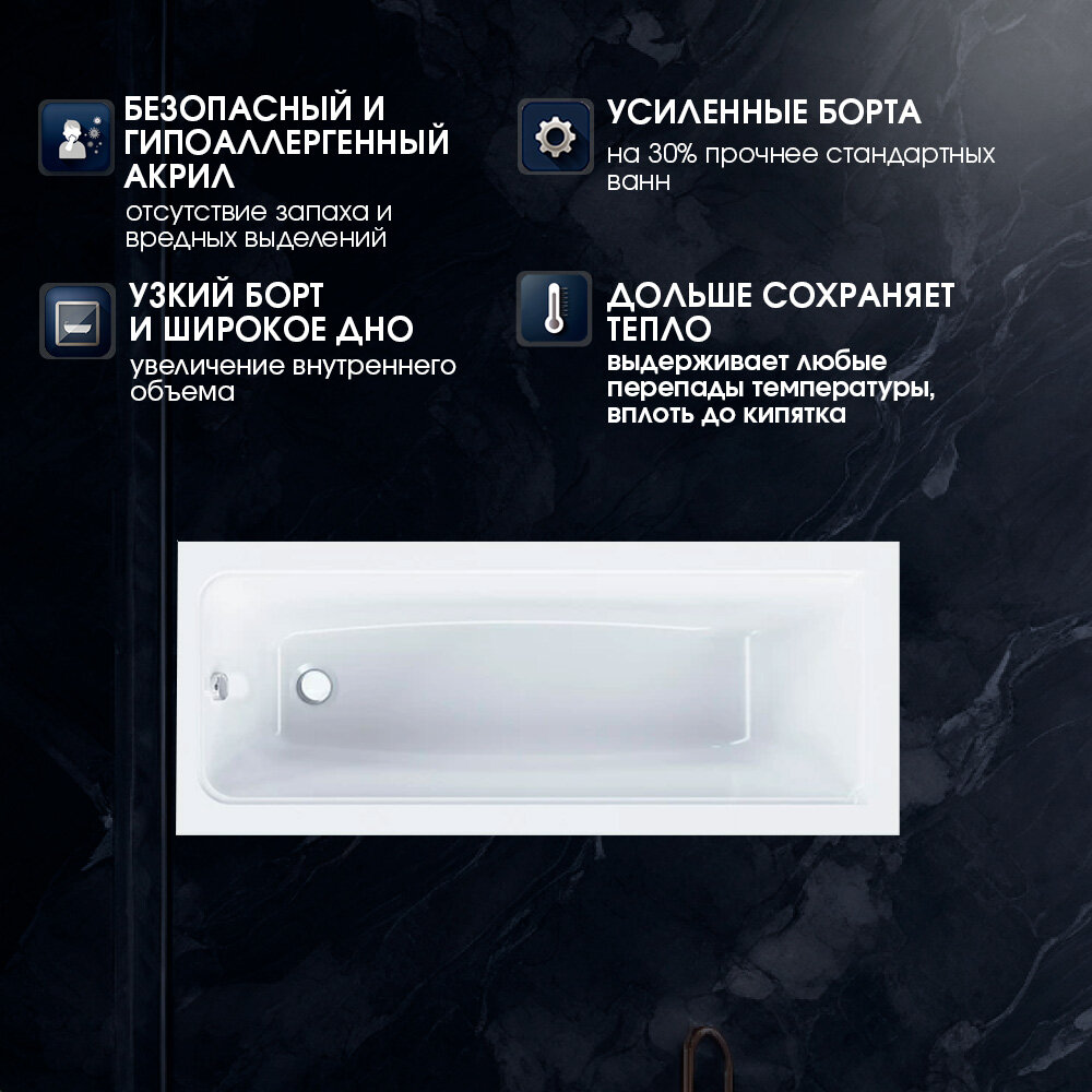 Ванна акриловая AM.PM Gem 170x70 см комплект 2 в 1: ванна с каркасом; литьевой акрил, вакуумная формовка, усиленный корпус, гарантия 15 лет, Германия интересное:
