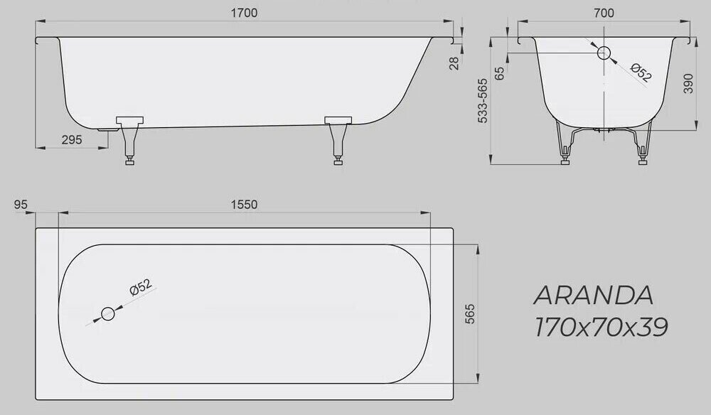 Ванна Iberica Blanca ARANDA стальная эмалированная 170х70х39 (IB-AR-170-70-39-SG)