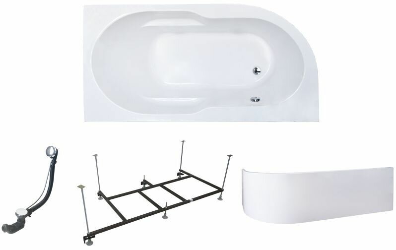 Акриловая ванна Royal Bath AZUR 160X80X60 левосторонняя комплект (ванна, каркас, панель, слив-перелив)