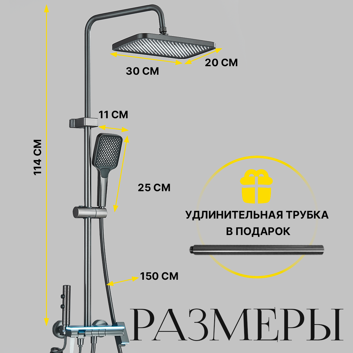 Душевая система с тропическим душем, термостатом и led-подсветкой