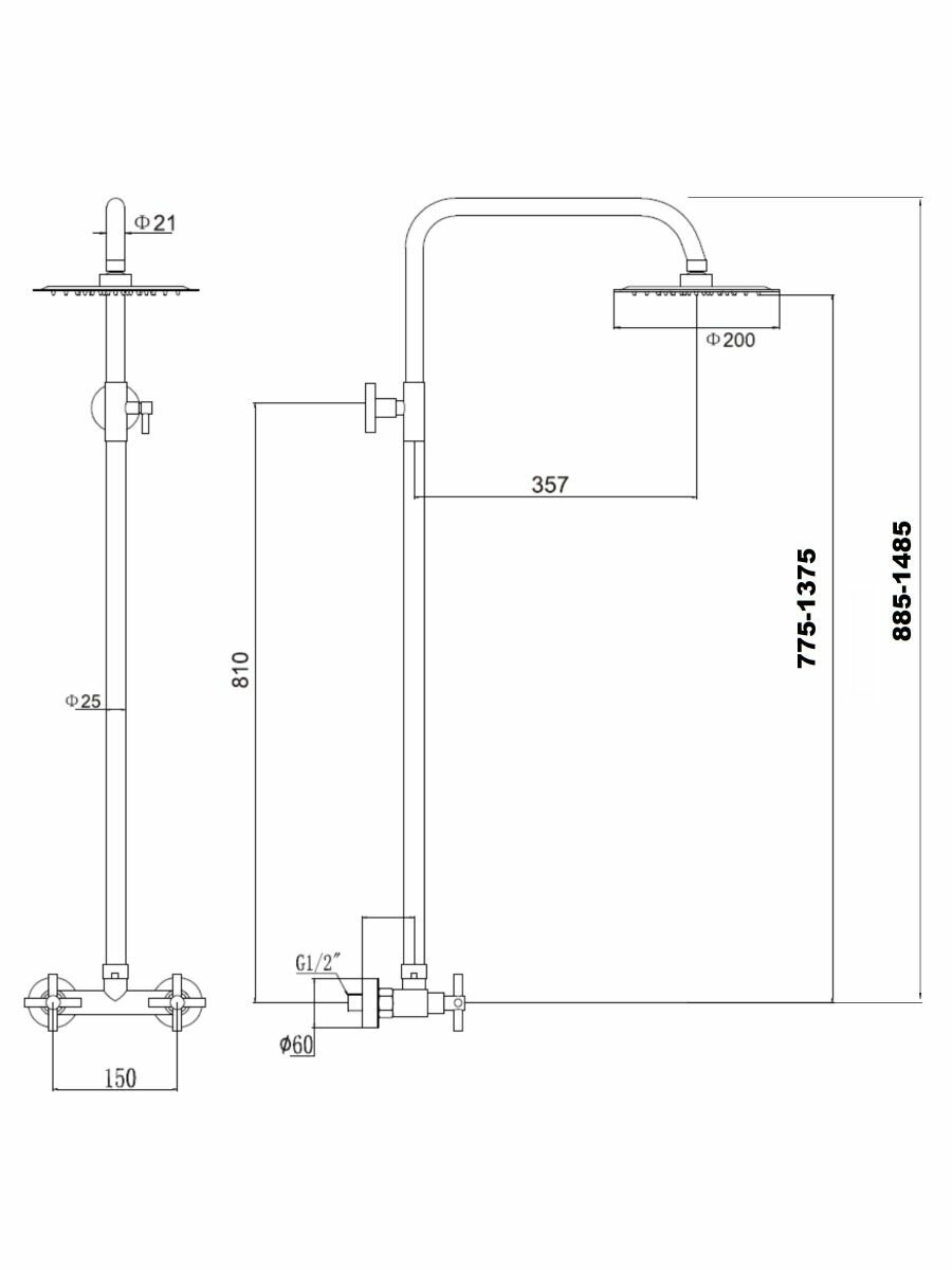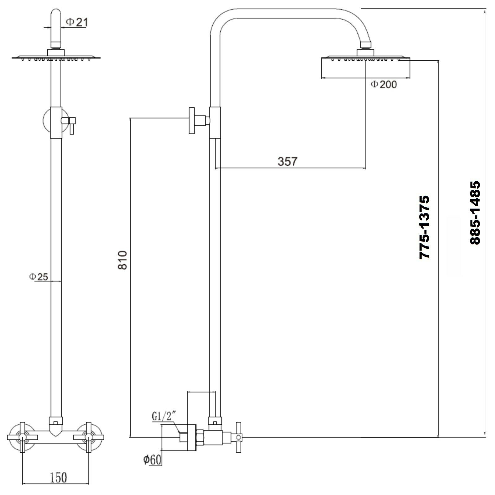| Комплектация | Регулируемая душевая стойка (80-145 см) - 1 шт. Верхний душ "Тропический ливень" - 1 шт. Смеситель для душа без излива - 1 шт. Эксцентрики - 1 пара. Отражатели - 1 пара. |