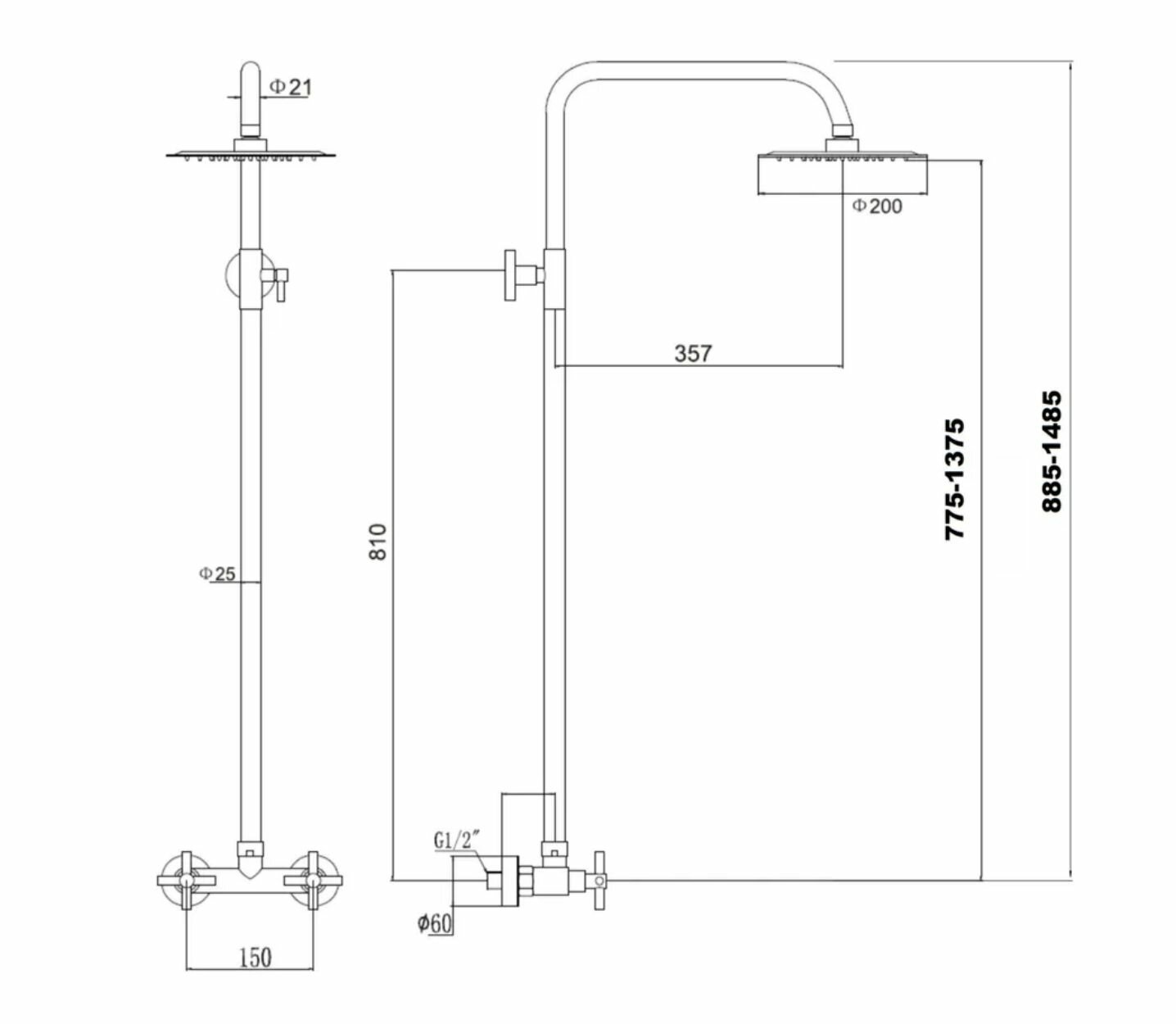 | Особенности | S-образные эксцентрики / антиизвестковое покрытие / держатель душевой лейки / защита от скручивания / регулируемый верхний душ |