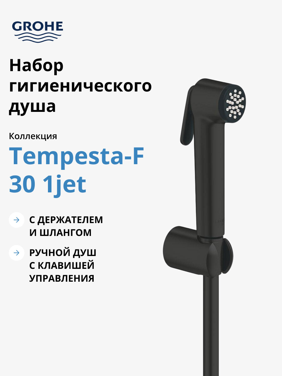 Купить Набор для гигиенического душа GROHE Tempesta-F 30 1jet с держателем и шлангом, матовый черный (1025302431)