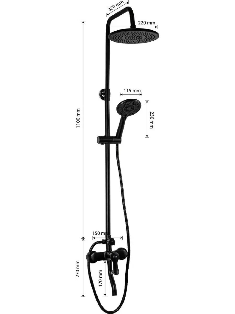 Душевая система со смесителем MAK / тропический ДУШ / Цвет черный