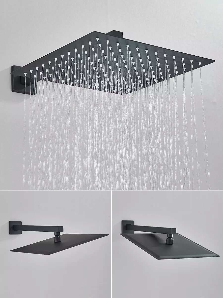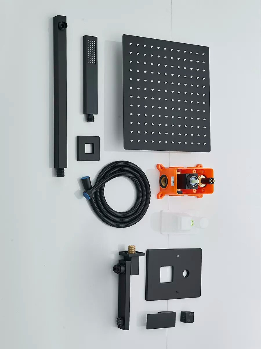 Матовый черный 12 дюймов смеситель для душа в ванной комнате с дождевым водопадом Черная ванна Душевая система Смеситель для настенного монтажа Кран