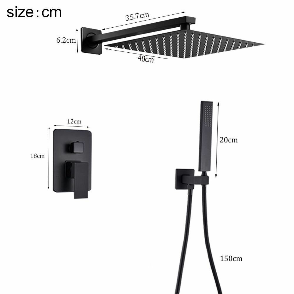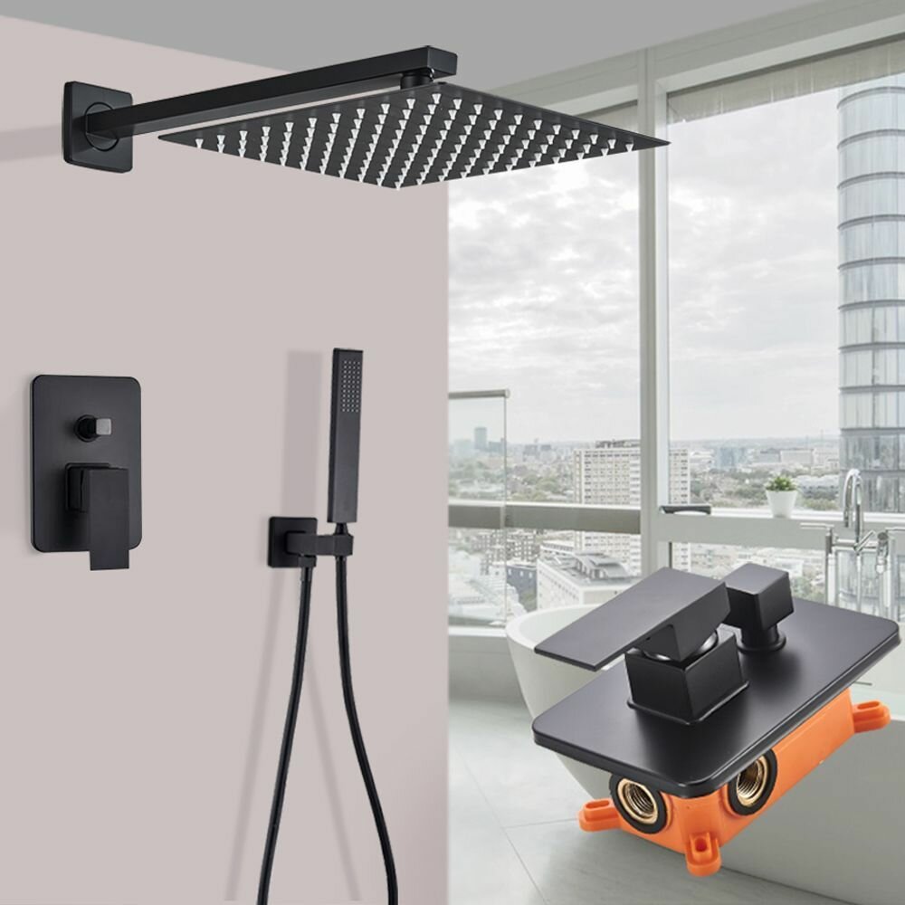 Матовый черный 12 дюймов смеситель для душа в ванной комнате с дождевым водопадом Черная ванна Душевая система Смеситель для настенного монтажа Кран