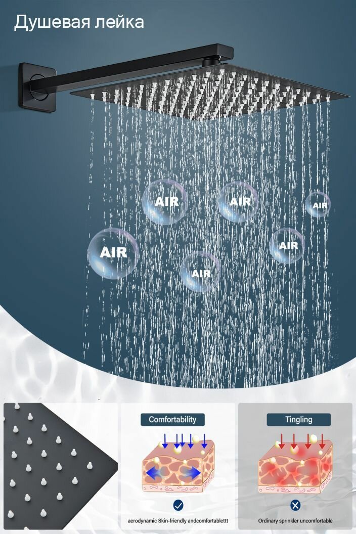 Купить Смеситель для душа с дождевым эффектом и черной ванной