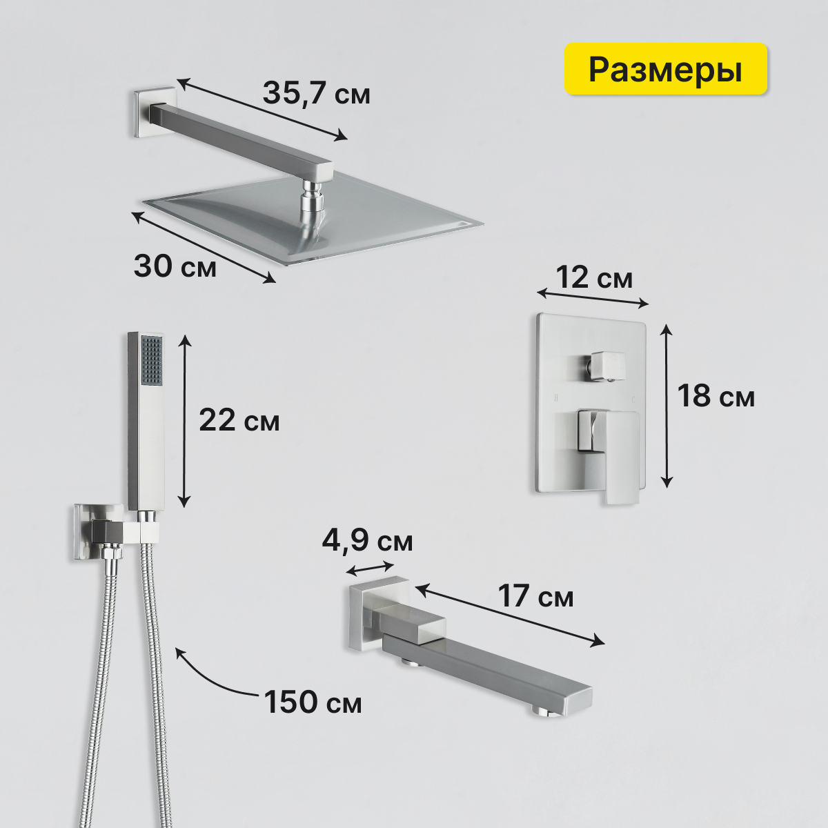 | Форма верхнего душа | квадратная |