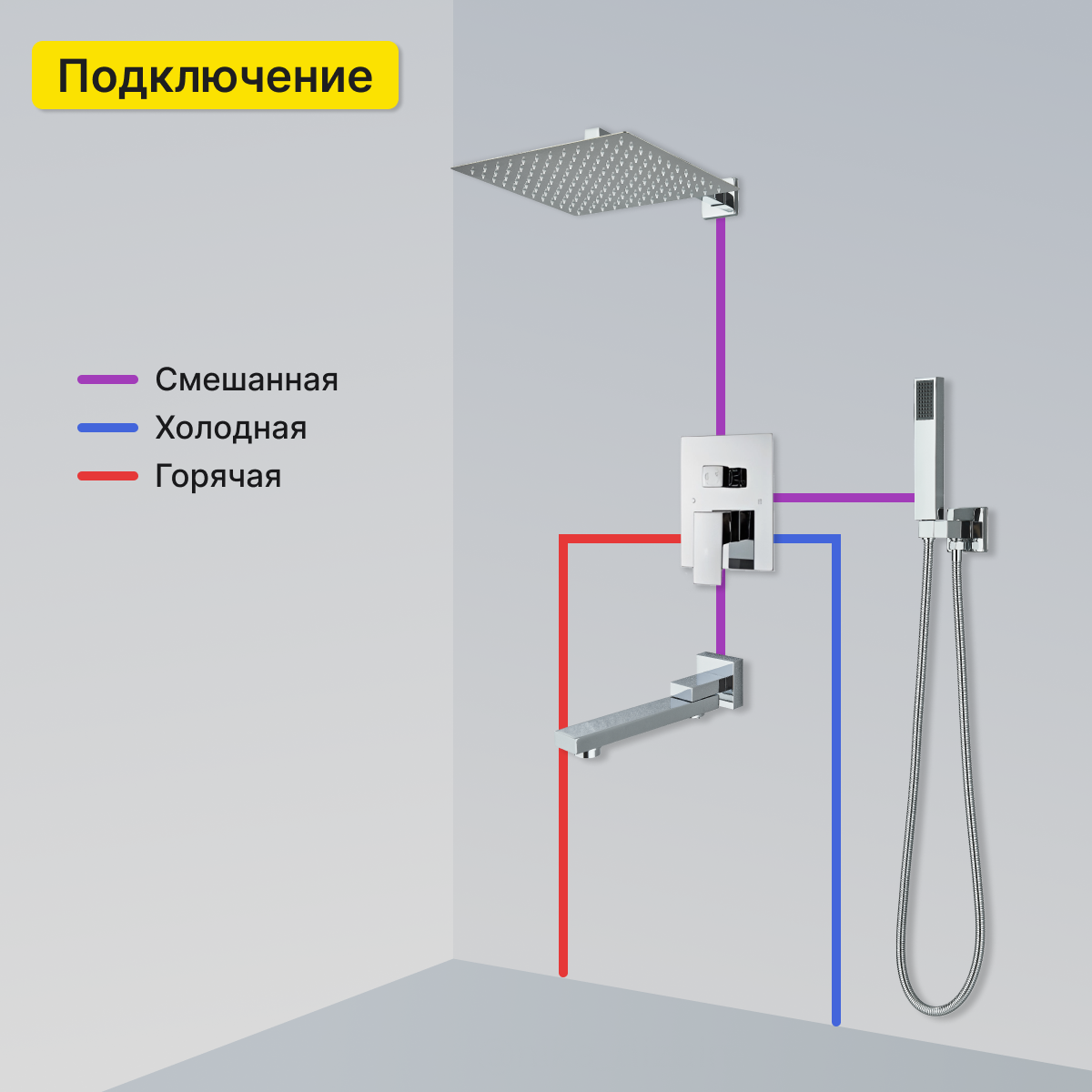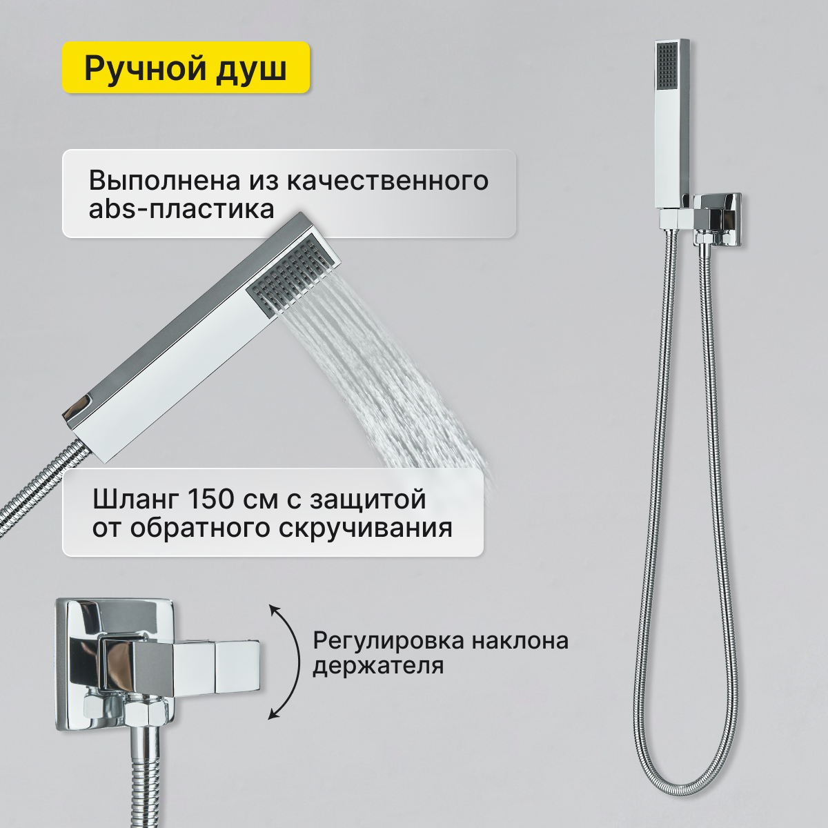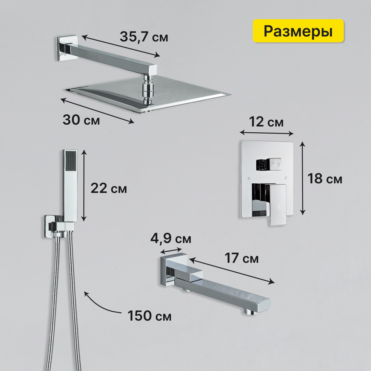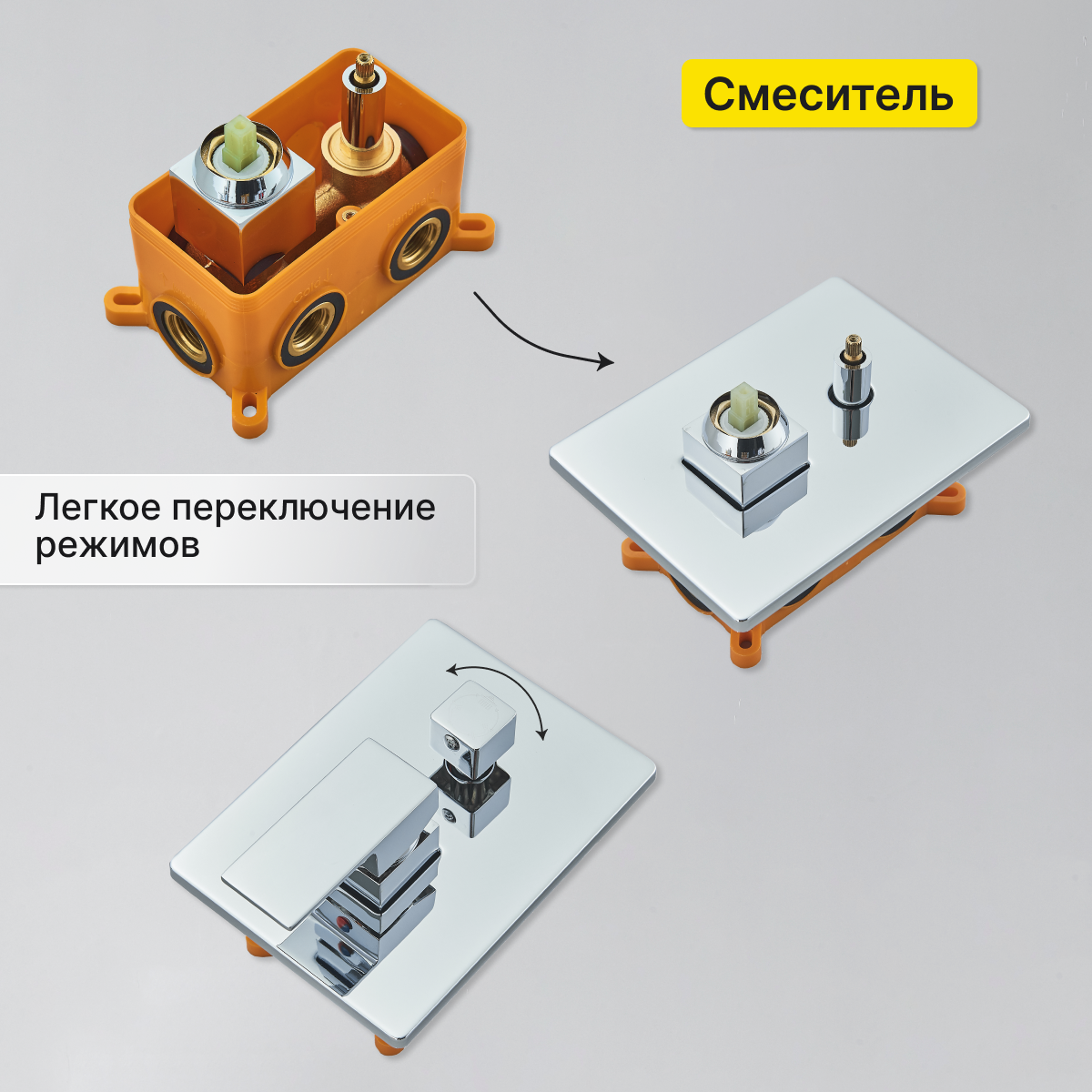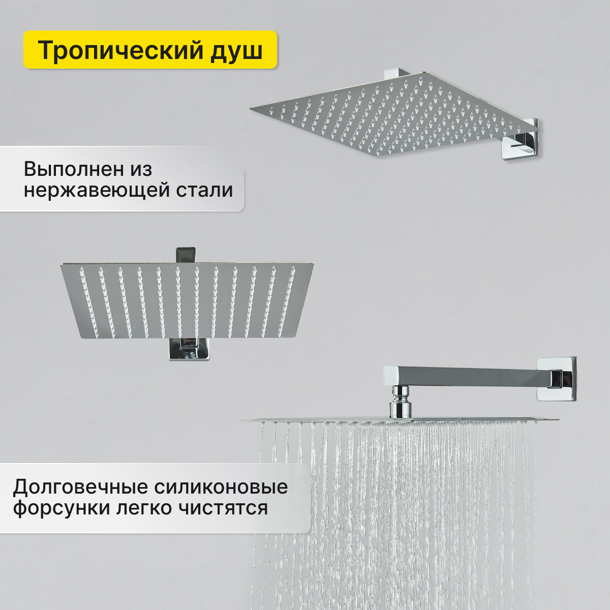 Душевой комплект скрытого монтажа с тропическим душем хром интересное: