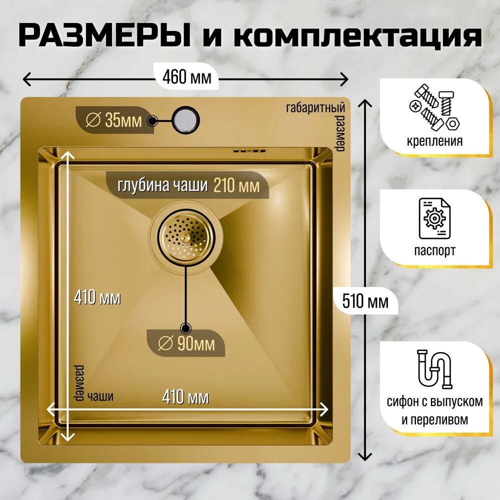 СохранитьКухонная мойка FLORACIO Steel F.4651.GD, золото матовое интересное: