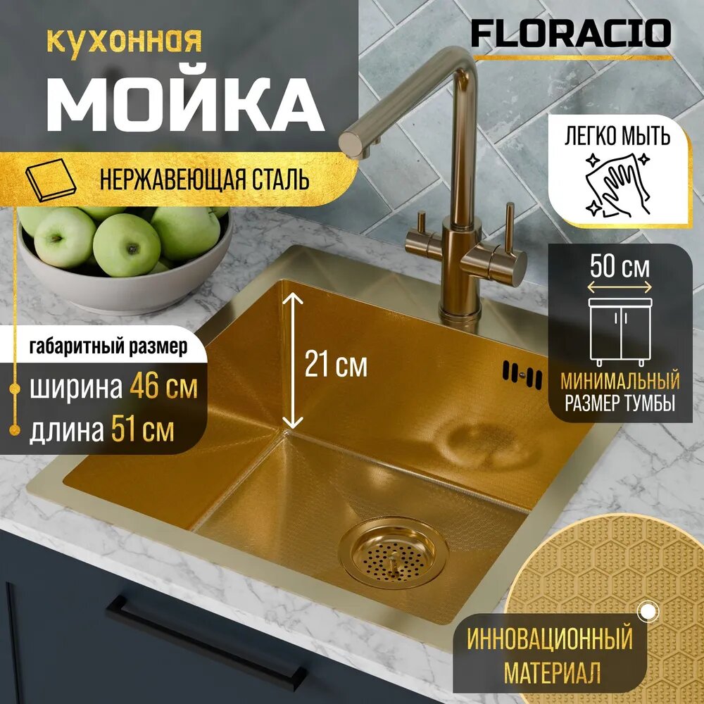 Кухонная мойка FLORACIO Steel F.4651.GD, золото матовое