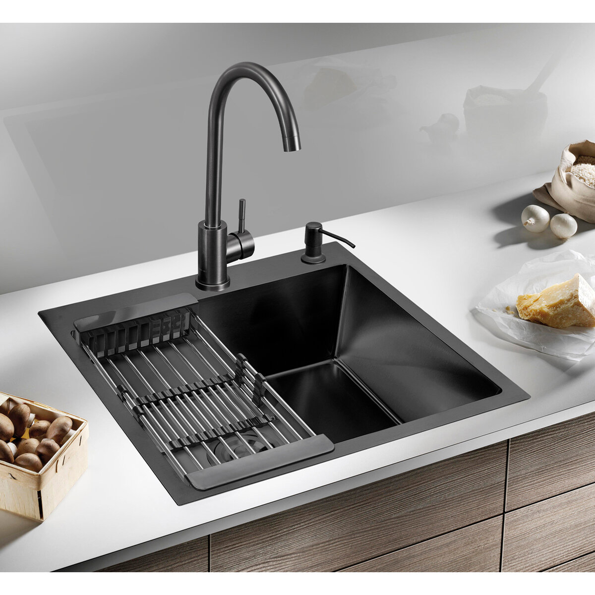 Ростовская мануфактура сантехники РМС Набор 3 в 1 РМС ( кухонная мойка+ корзина раздвижная+ дозатор врезной) MR-6050BL