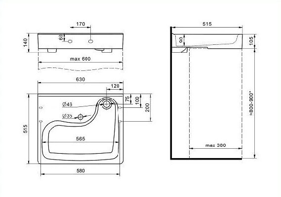 | Расположение отверстия под смеситель | в центре |