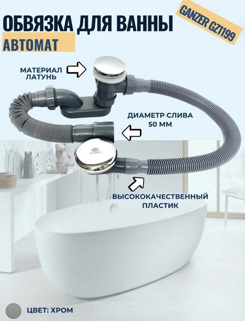 Пластиковая обвязка (автомат) для ванны Ganzer GZ1199 хром