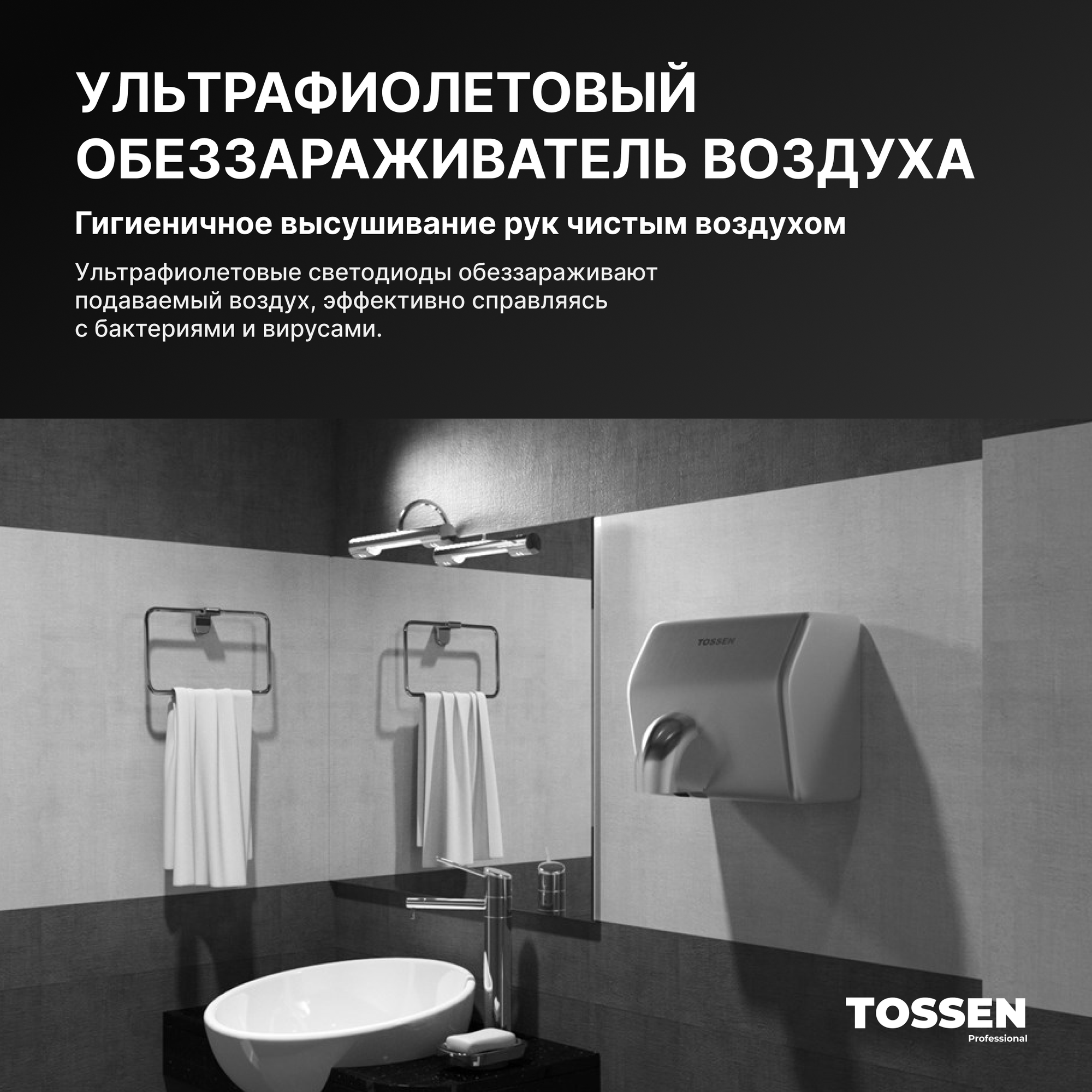 Сушилка для рук антивандальная - TOSSEN LS 2303 M интересное: