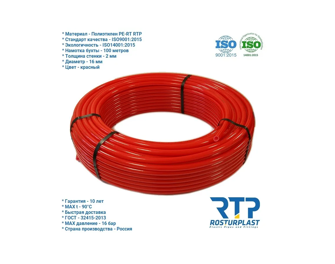 Труба теплый пол 16 x 2 мм 100 метров PE-RT RTP термостойкий полиэтилен красный интересное: