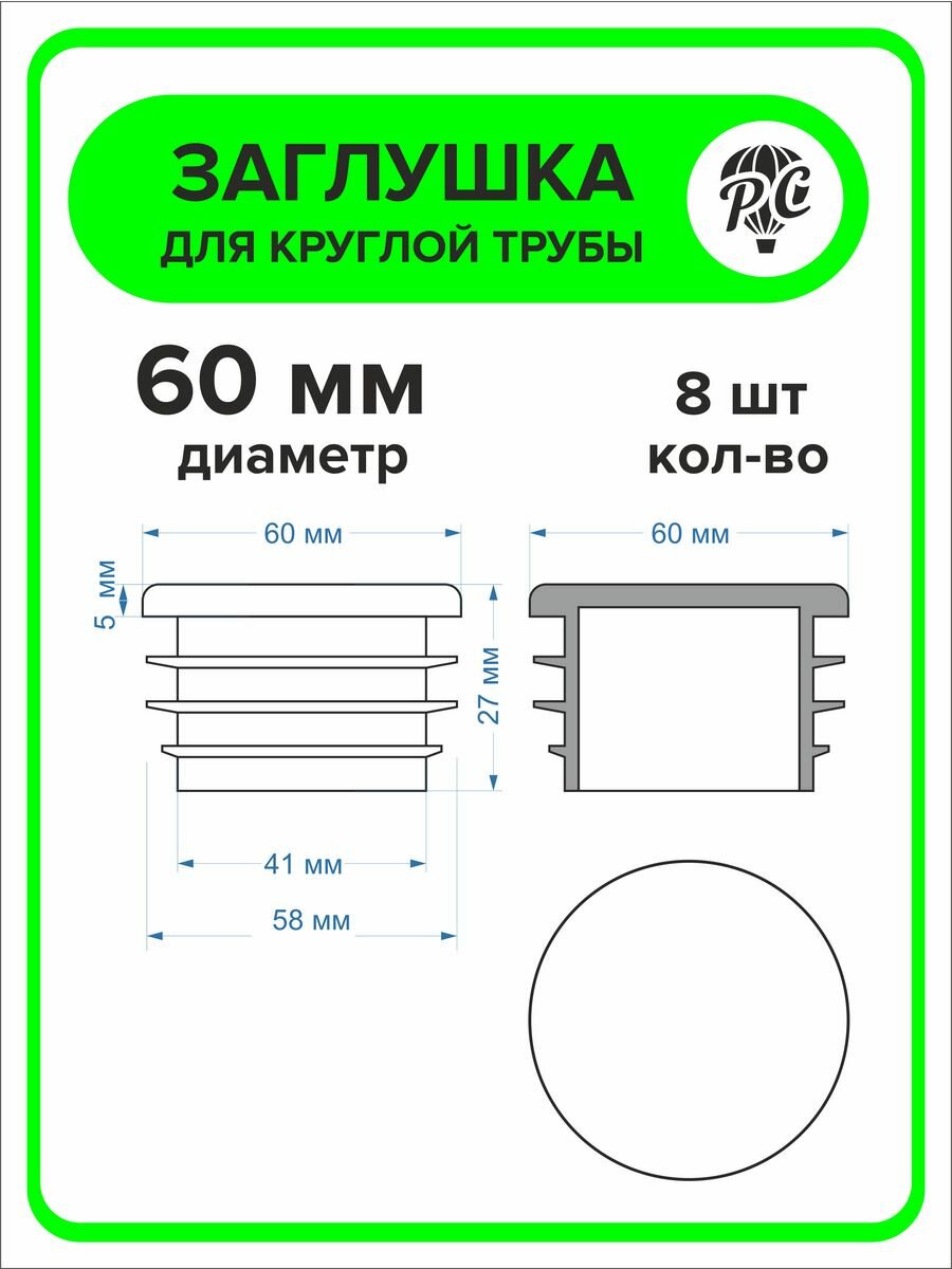 Купить Заглушка для круглой трубы диаметр 60 мм, 8 штук