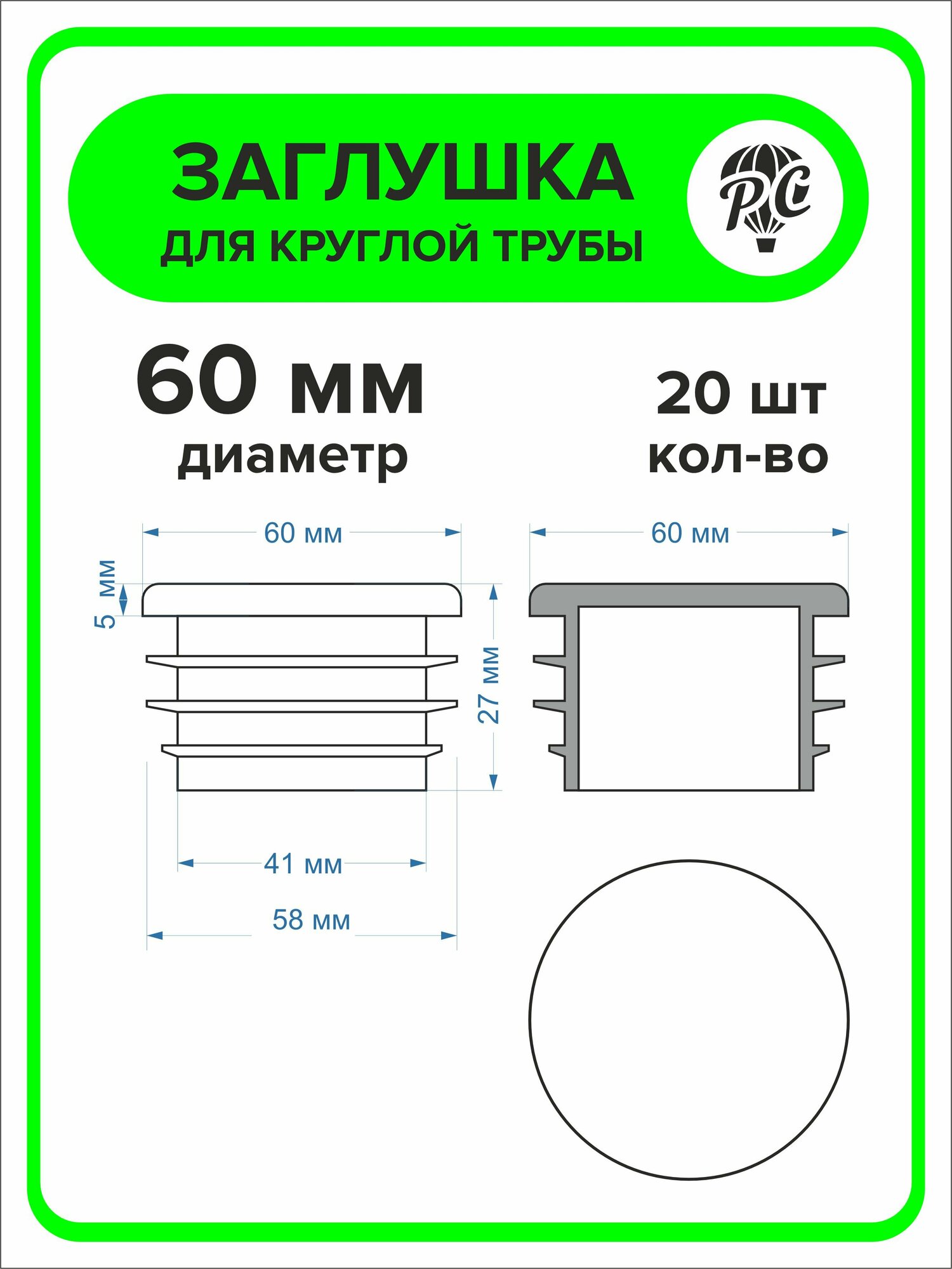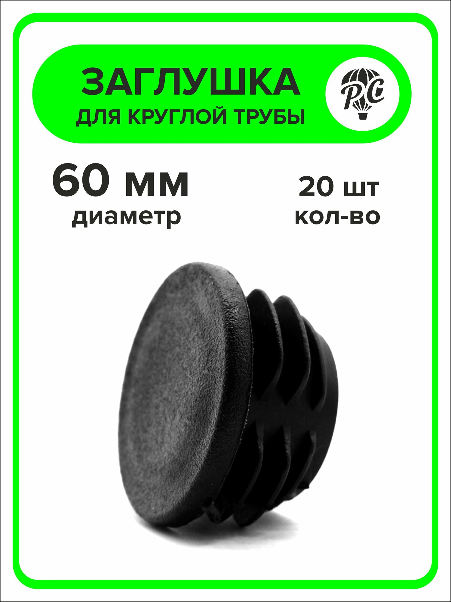 Купить Заглушка для круглой трубы пластиковая диаметр 60 мм, 20 штук