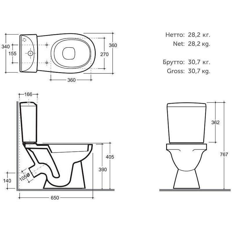Унитаз-компакт с косым выпуском Керамин Рива с сиденьем интересное: