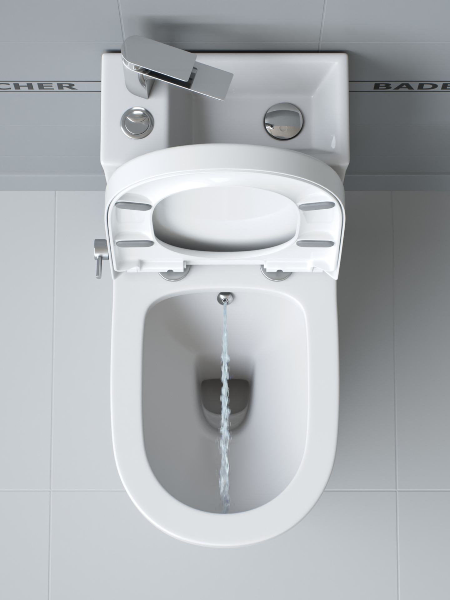 Купить Унитаз BADENBECHER 8674ABW (Комбоунитаз) моноблок 3 в 1 с встроенным биде и раковиной на бачке сиденье - микролифт в комлекте