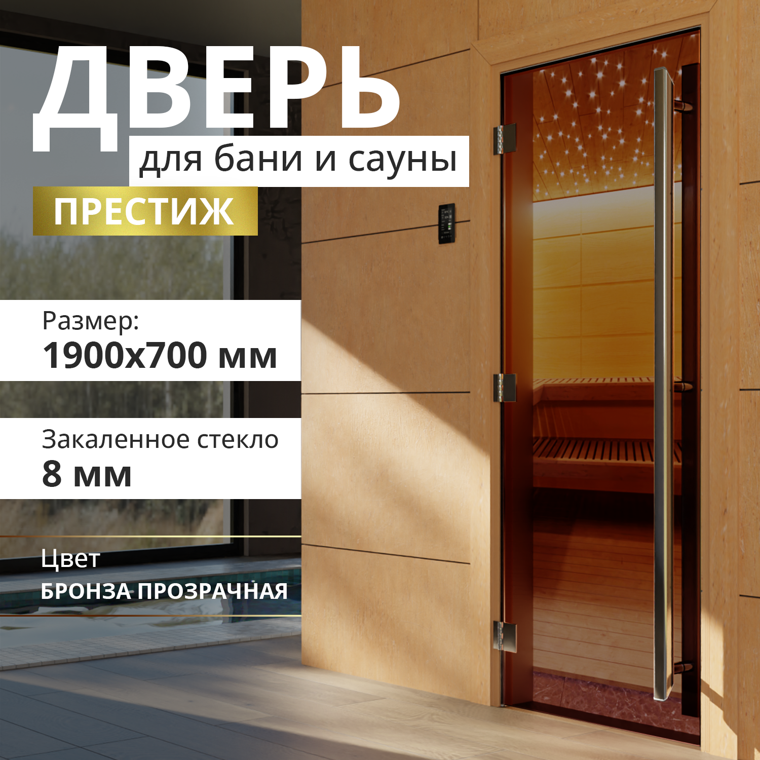 Дверь для бани "Престиж бронза" 1900х700 мм. Левая (петли слева) интересное: