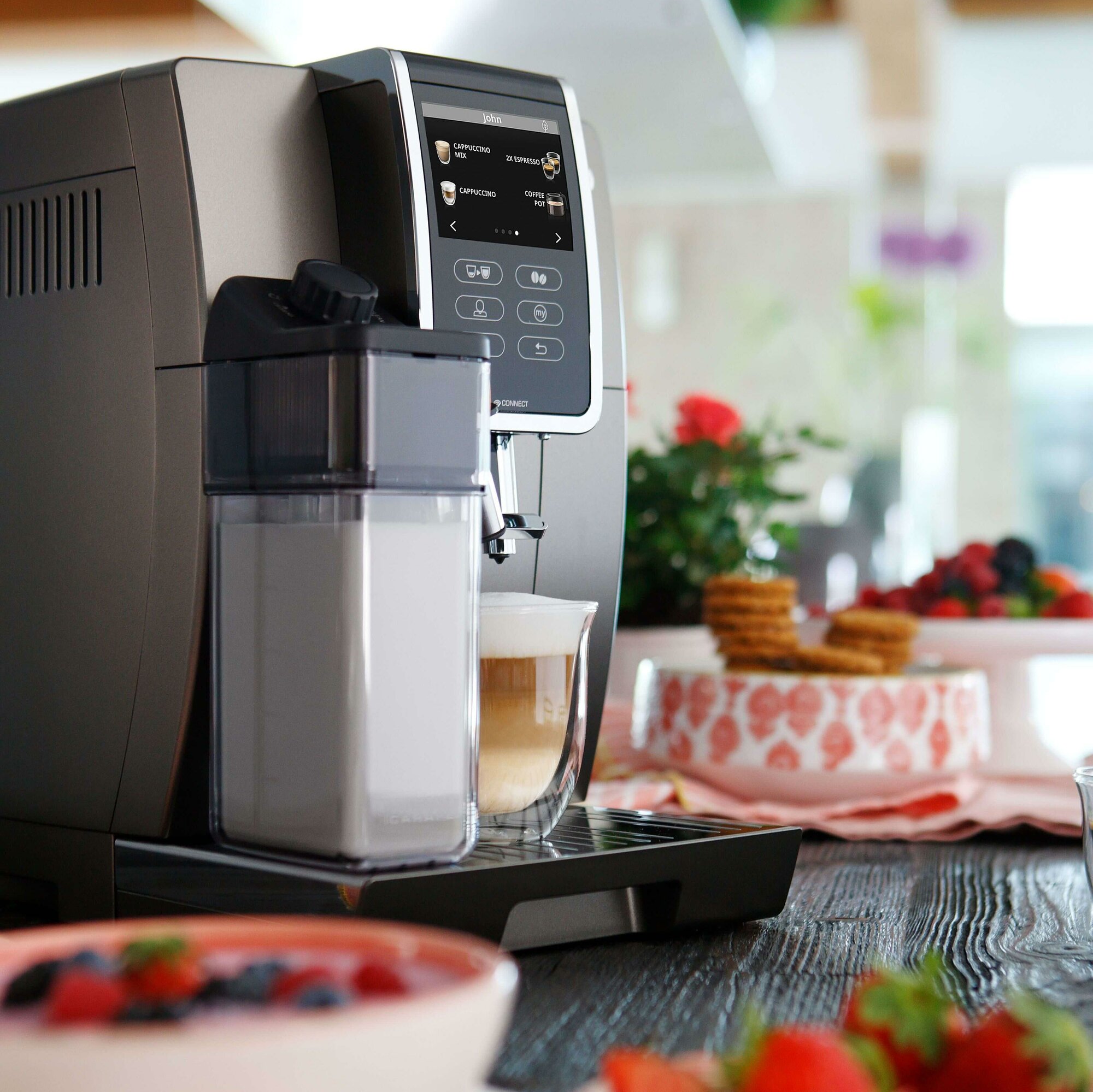 Кофе пьем разный - и очень вкусно. Множество программ и вариантов настройки. Очень стильно смотрится и не занимает много места |
