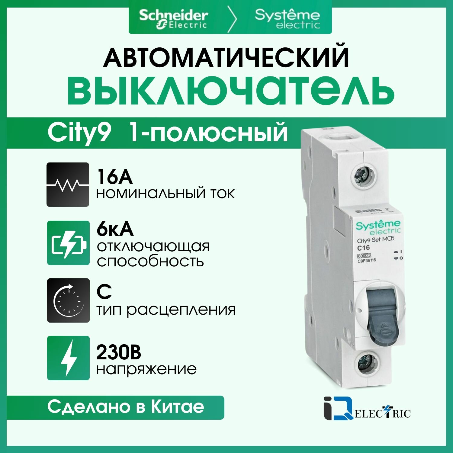 Systeme Electric City9 Set Автоматический выключатель (АВ) С 16А 1P 6kA 230В