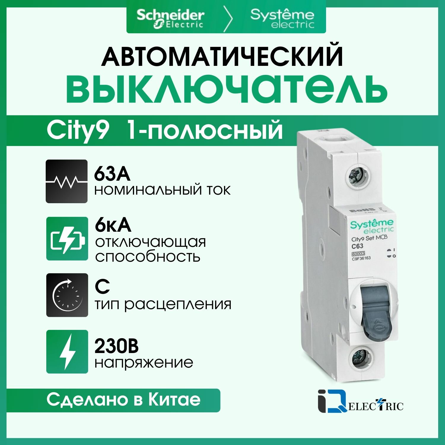 СохранитьВыключатель автоматический 1P Тип-С 63А 6kA City9 Set Systeme Electric C9F36163 интересное: