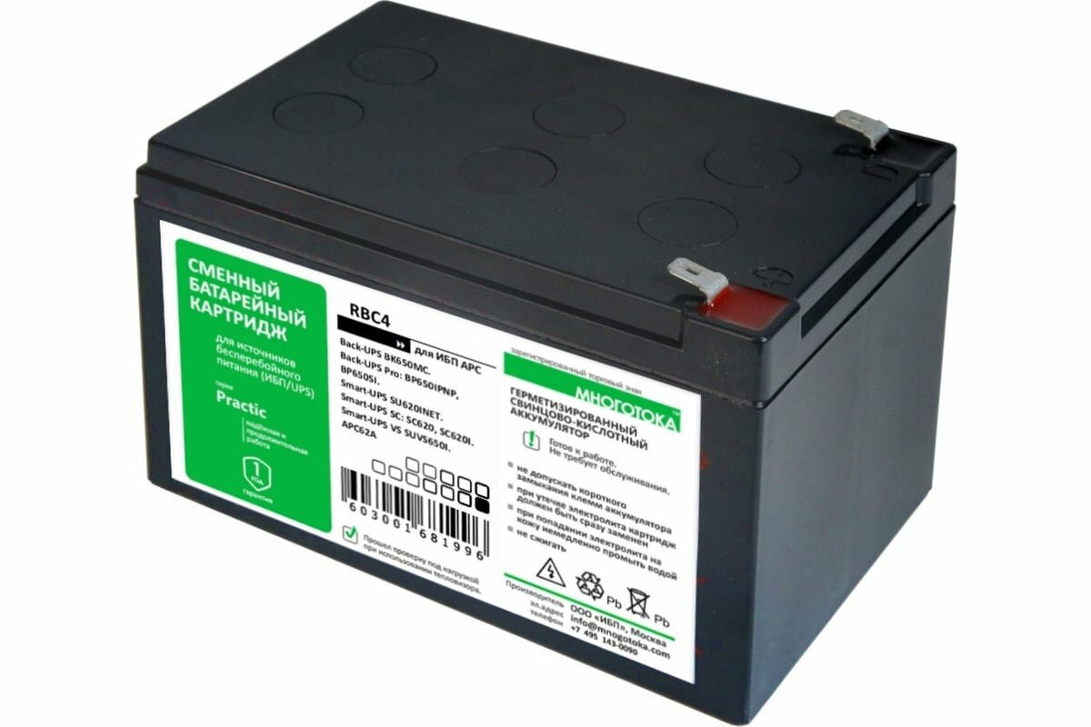 Купить Многотока - сменный батарейный картридж для ИБП APC: 12 В, 12 Ач, 3,68 кг, гарантия 12 месяцев RBC4 Practic