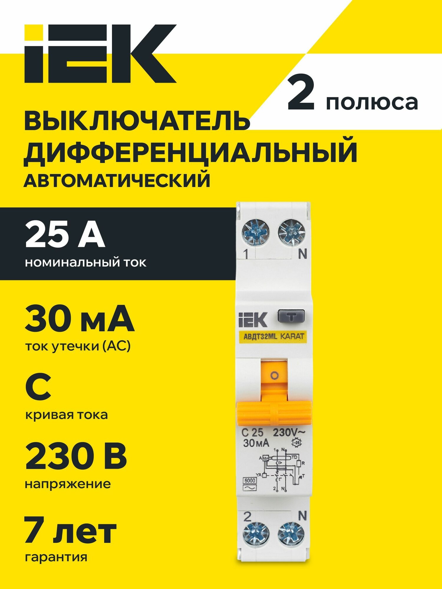 Выкл. авт. диф. тока АВДТ32МL С6 30мА KARAT IEK | код. MVD12-1-006-C-030 | IEK ( 1шт. )
