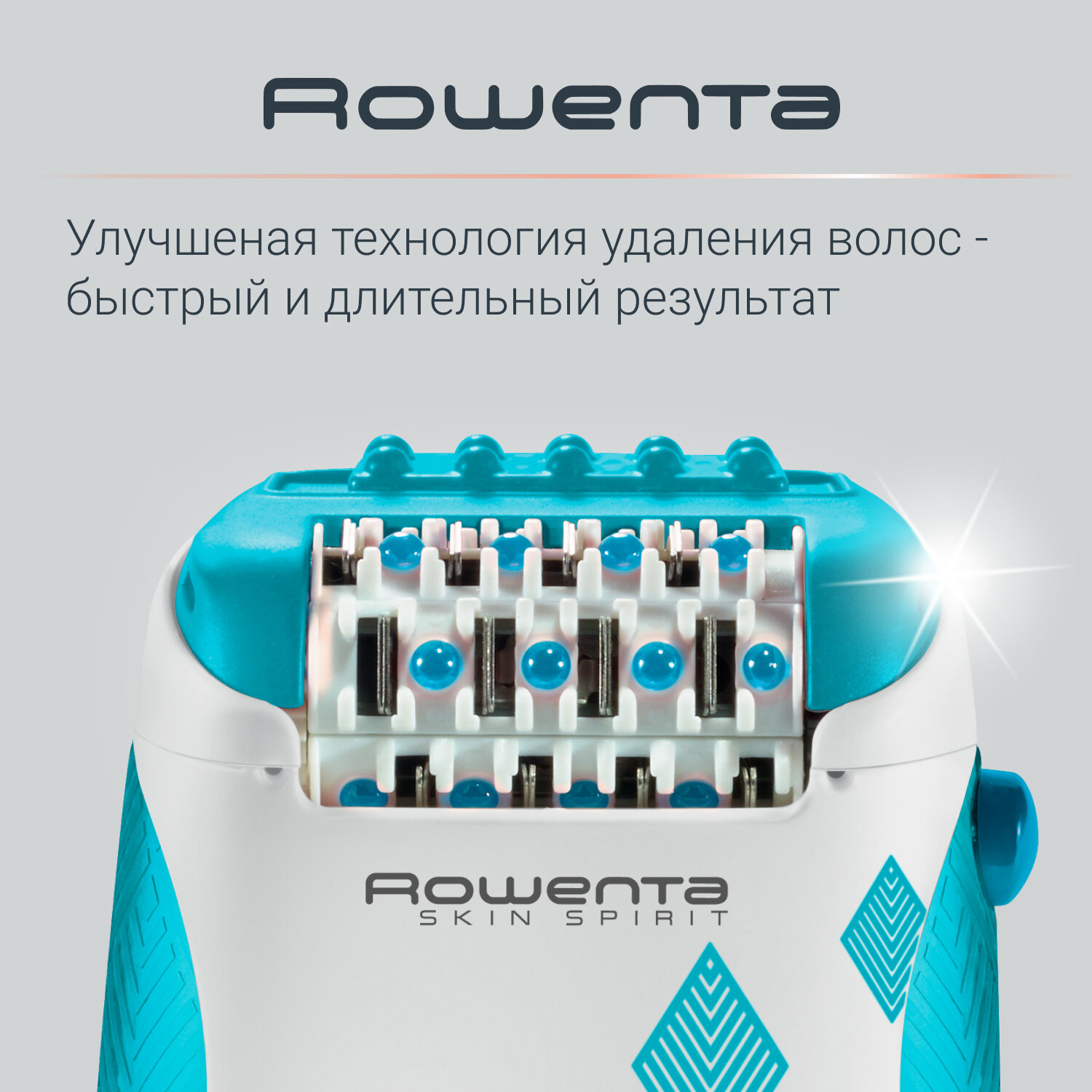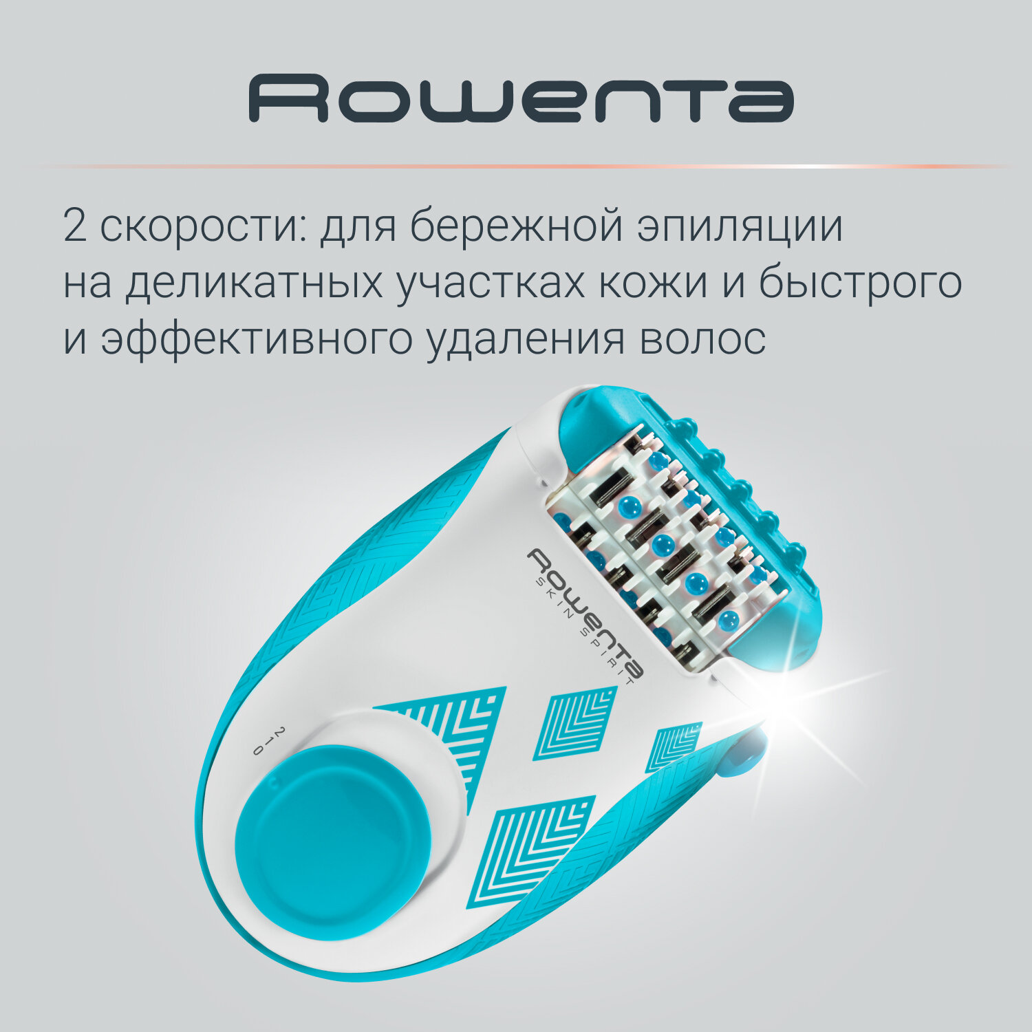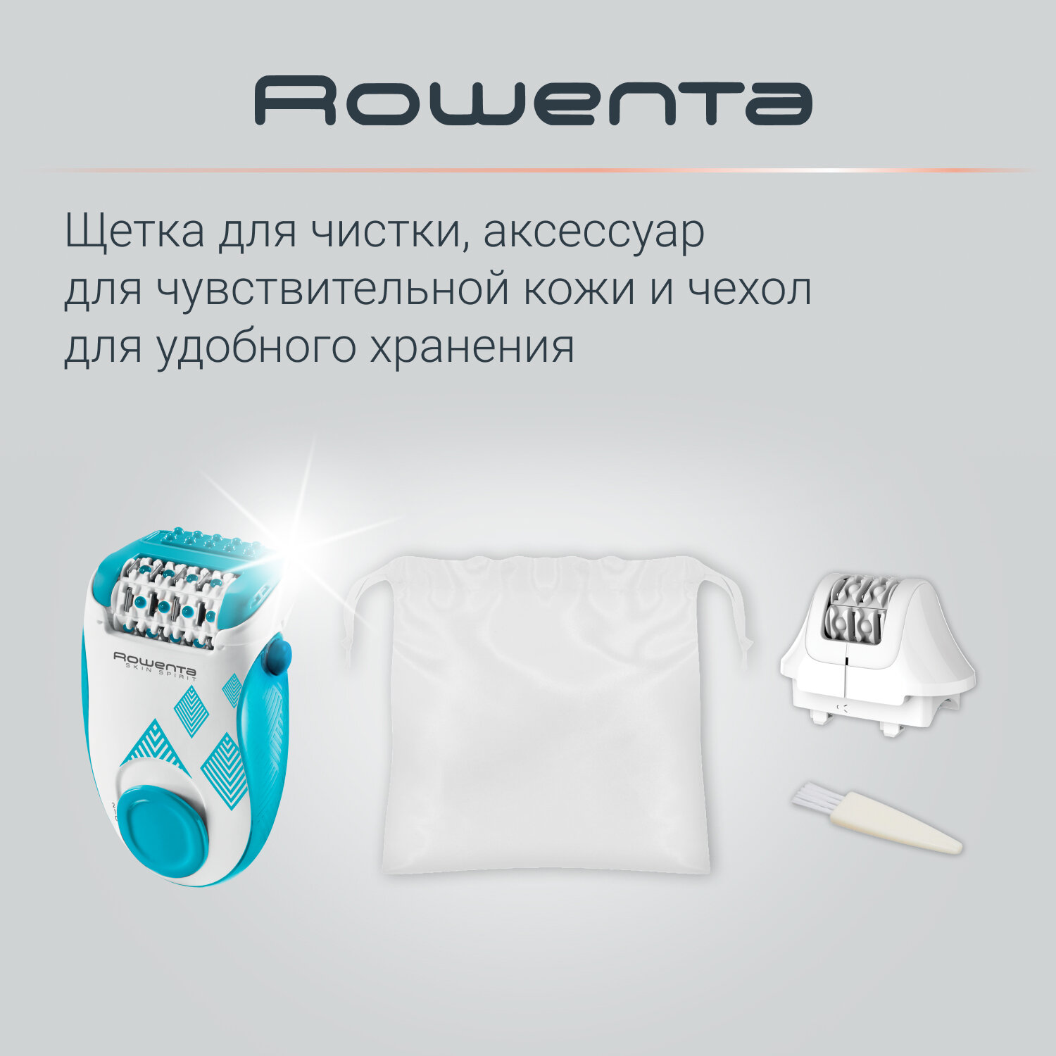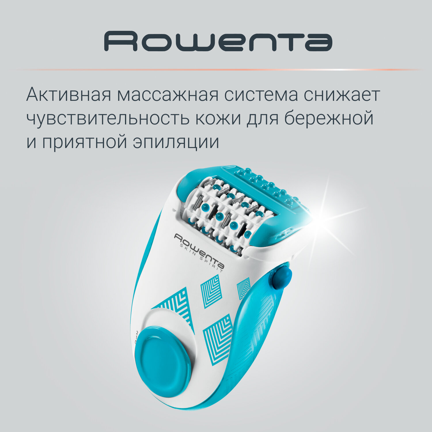 Эпилятор женский Rowenta Skin Spirit EP2910F1, до 0.5 мм, с массажной и охлаждающей системами, белый/голубой