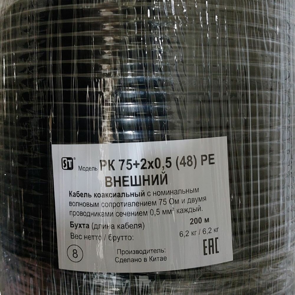 Кабель комбинированный для видеонаблюдения и домофонии КВК-П 2Х0,5 (РК 75+2х0,5 (48) PE Cu+CCA) черный для внешней прокладки (улица) (бухта 200м)