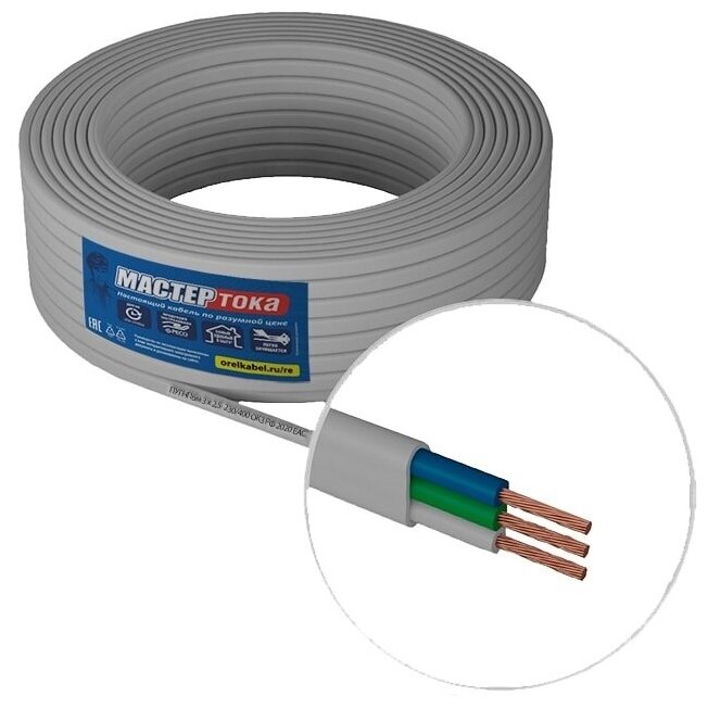 Мастер Тока Провод пугнпбм 3х2.5 бел 50 м МТ1380/МТП2042