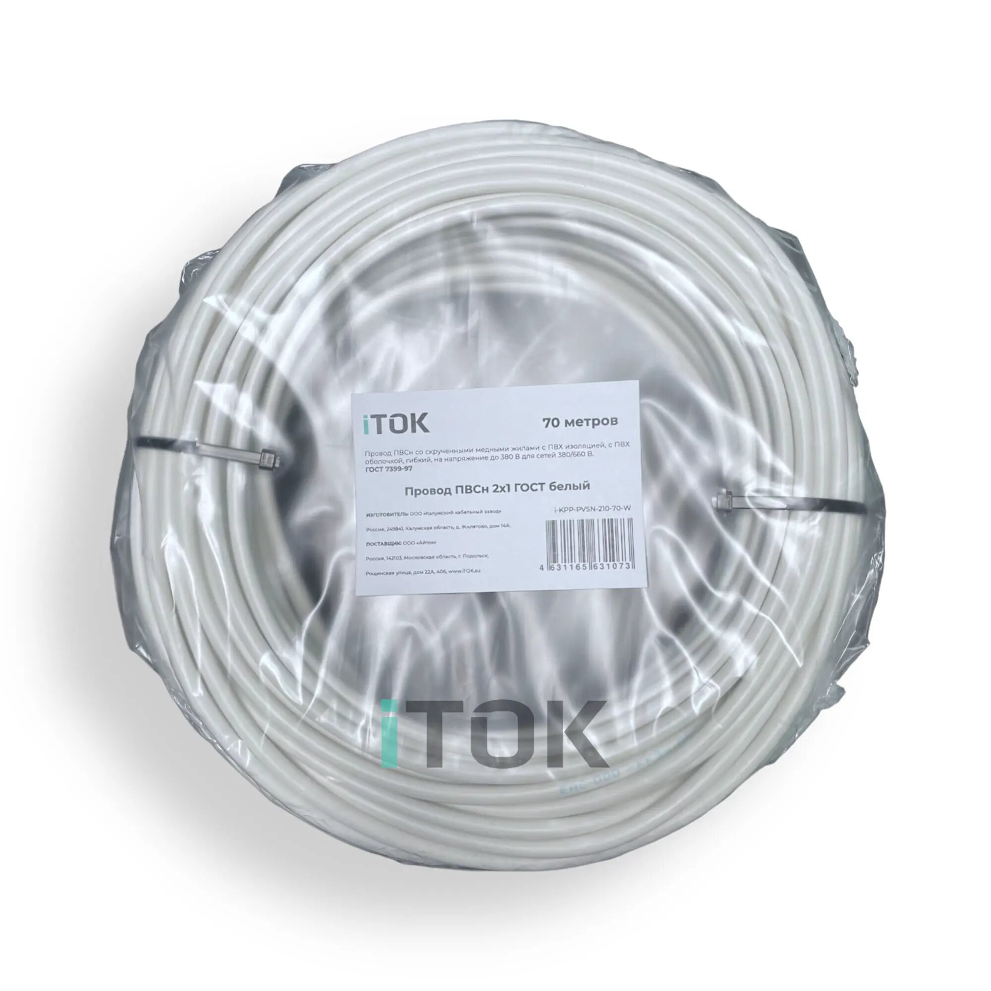 Провод ПВС 2х1,0 ГОСТ, 70 метров. Белый. Калужский кабельный завод