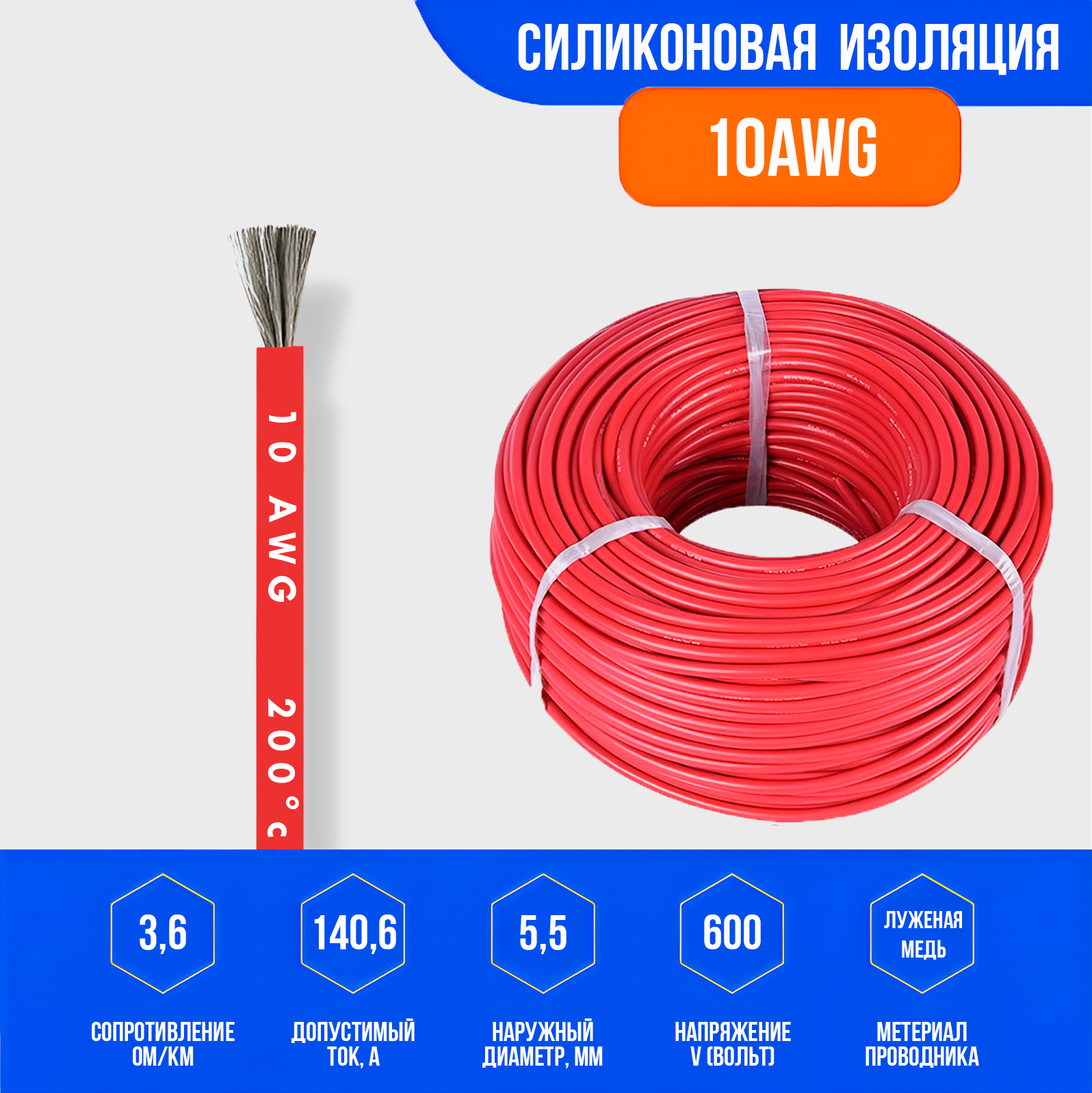 Силиконовый медный провод 10 AWG (1 метр) красный интересное: