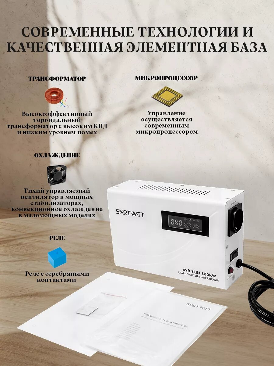Стабилизатор напряжения настенный AVR SLIM 10000RW, SMARTWATT AVRSLIM10000RW (1 шт.)