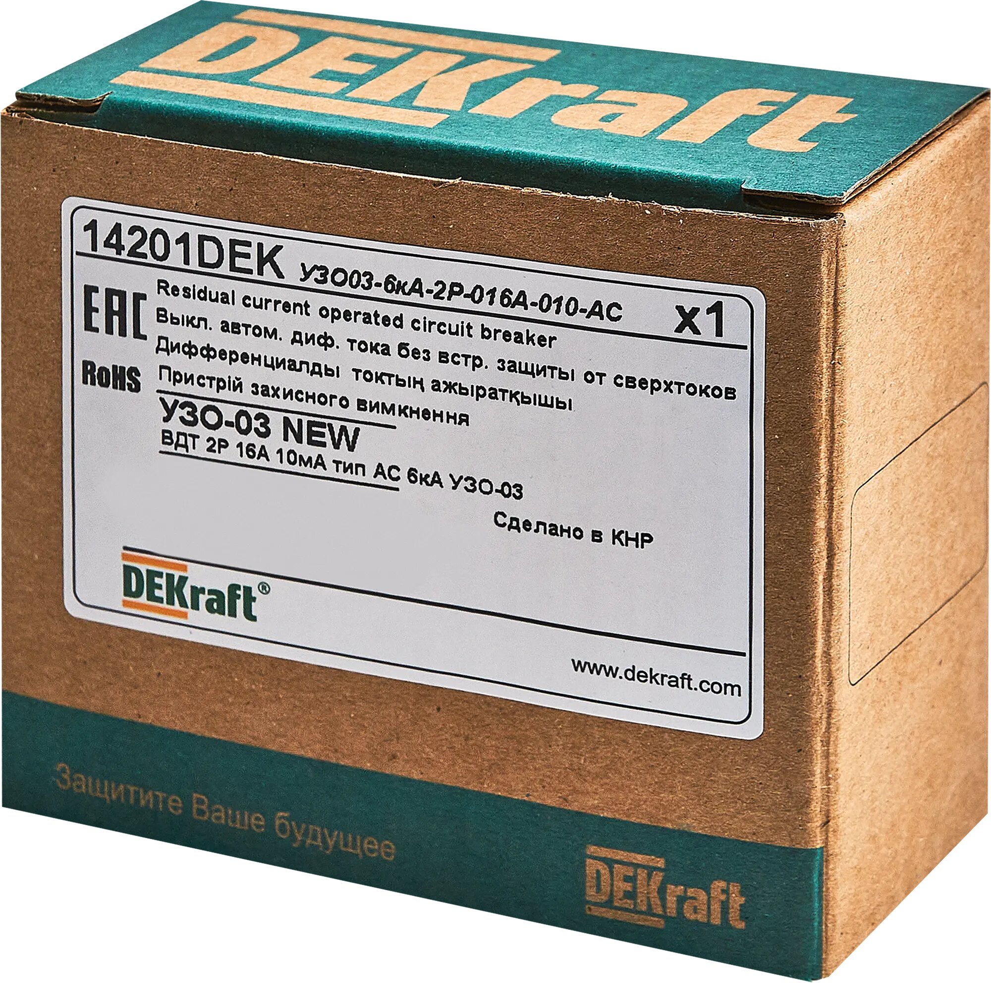 УЗО Dekraft ВДТ УЗО-03 2P 16 А 10 мА 6 кА АС