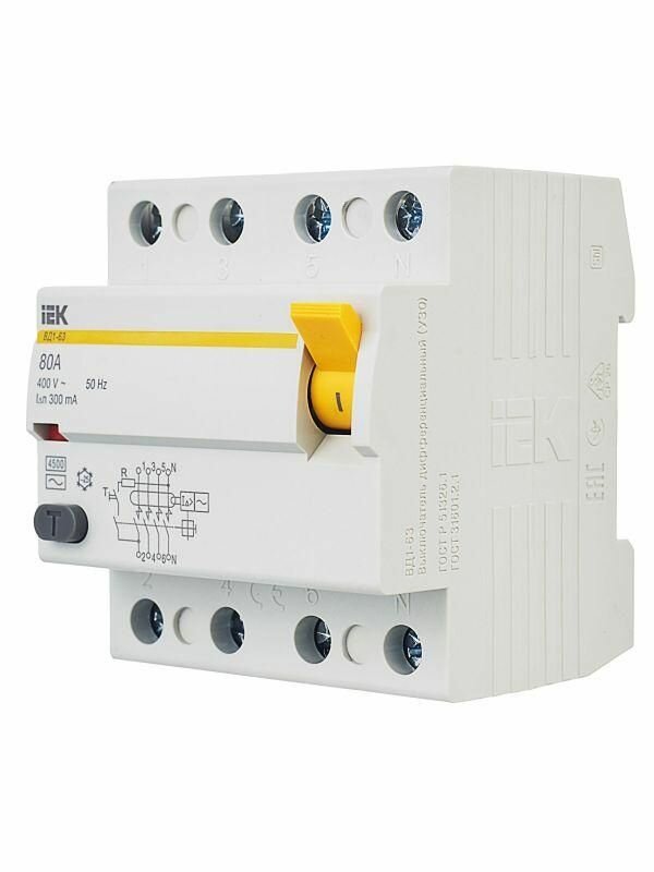 Выключатель дифференциального тока (УЗО) 4п 80А 300мА тип AC ВД1-63 IEK MDV10-4-080-300 интересное: