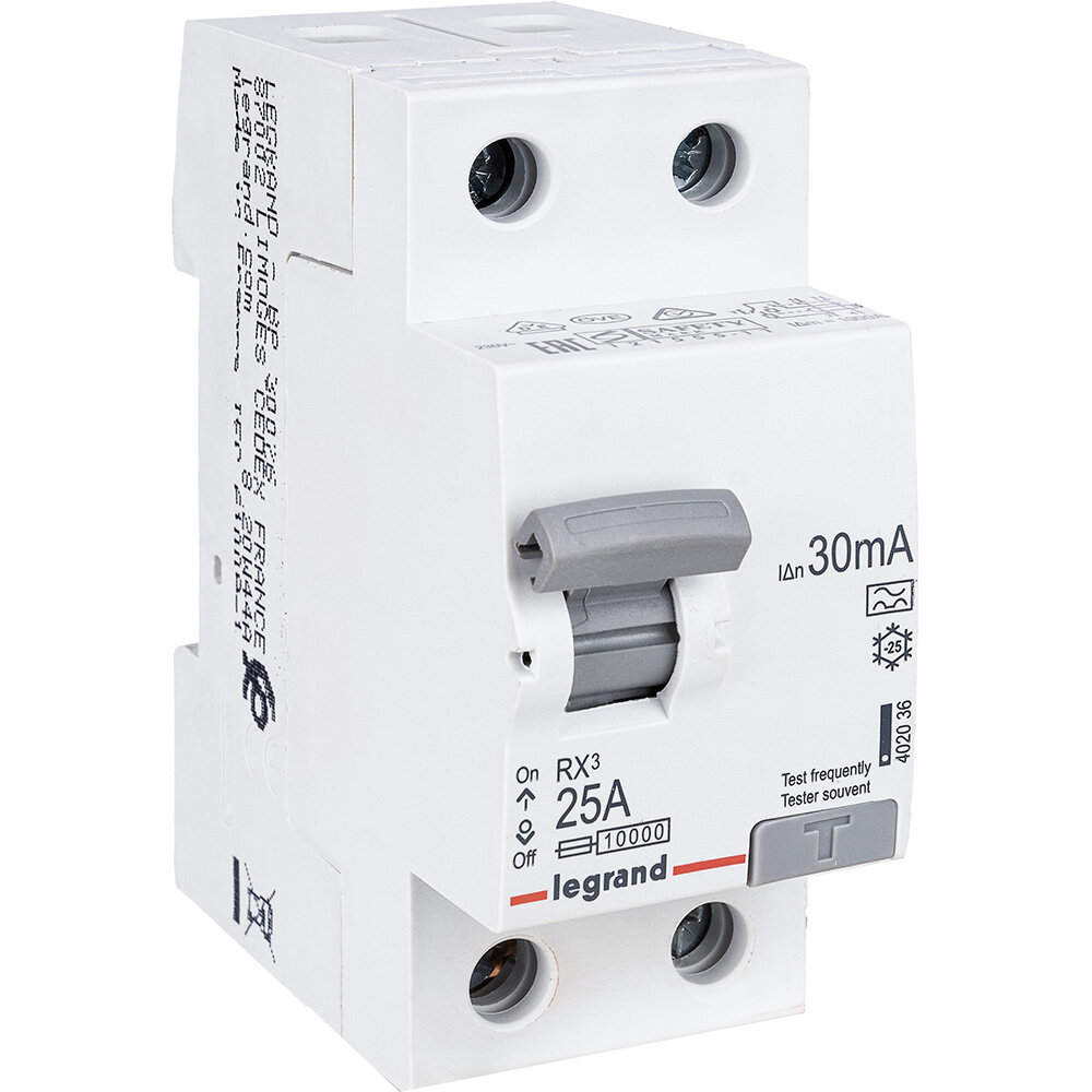 Купить Устройство защитного отключения (УЗО) Legrand RX3, 2 полюса, 25A, 30 mA, тип A, электро-механическое, ширина 2 DIN-модуля