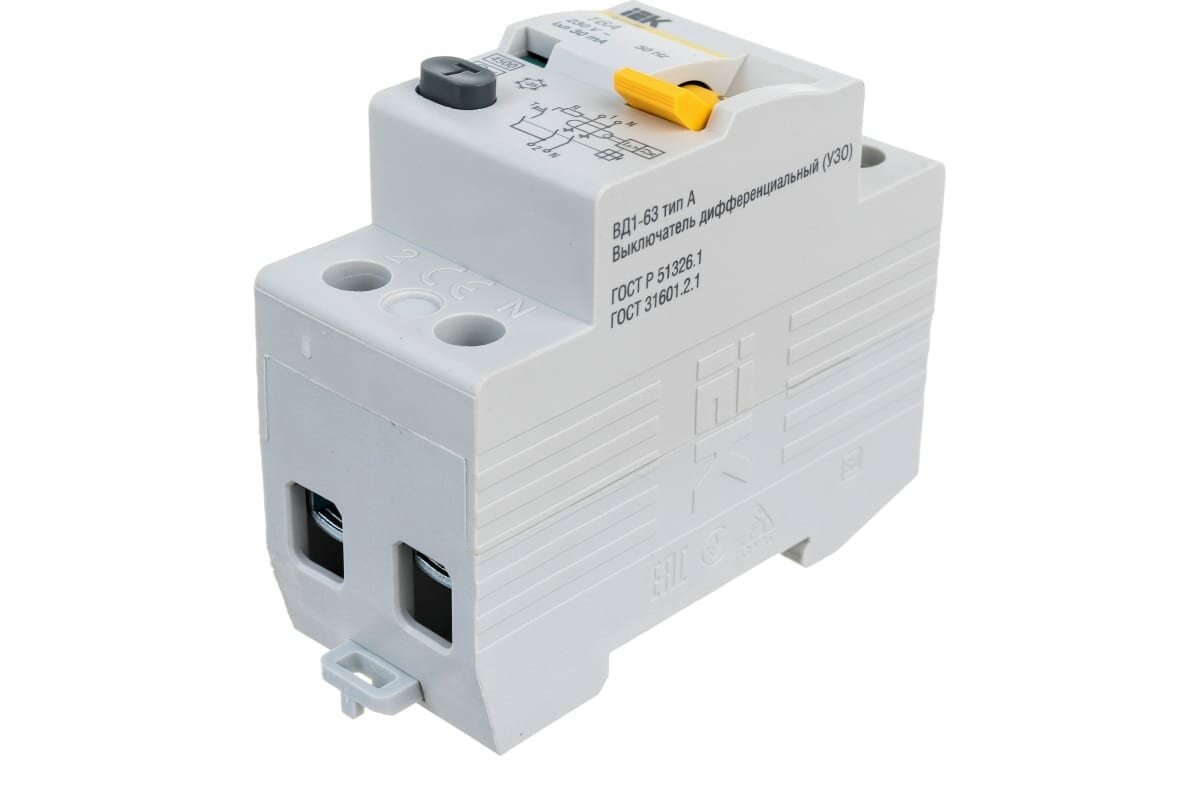 Выключатель дифференциальный тока (УЗО) ВД1-63 2Р 16А 30мА тип А(Электромеханическое) | код.MDV11-2-016-030 | IEK (2шт.в упак.) интересное: