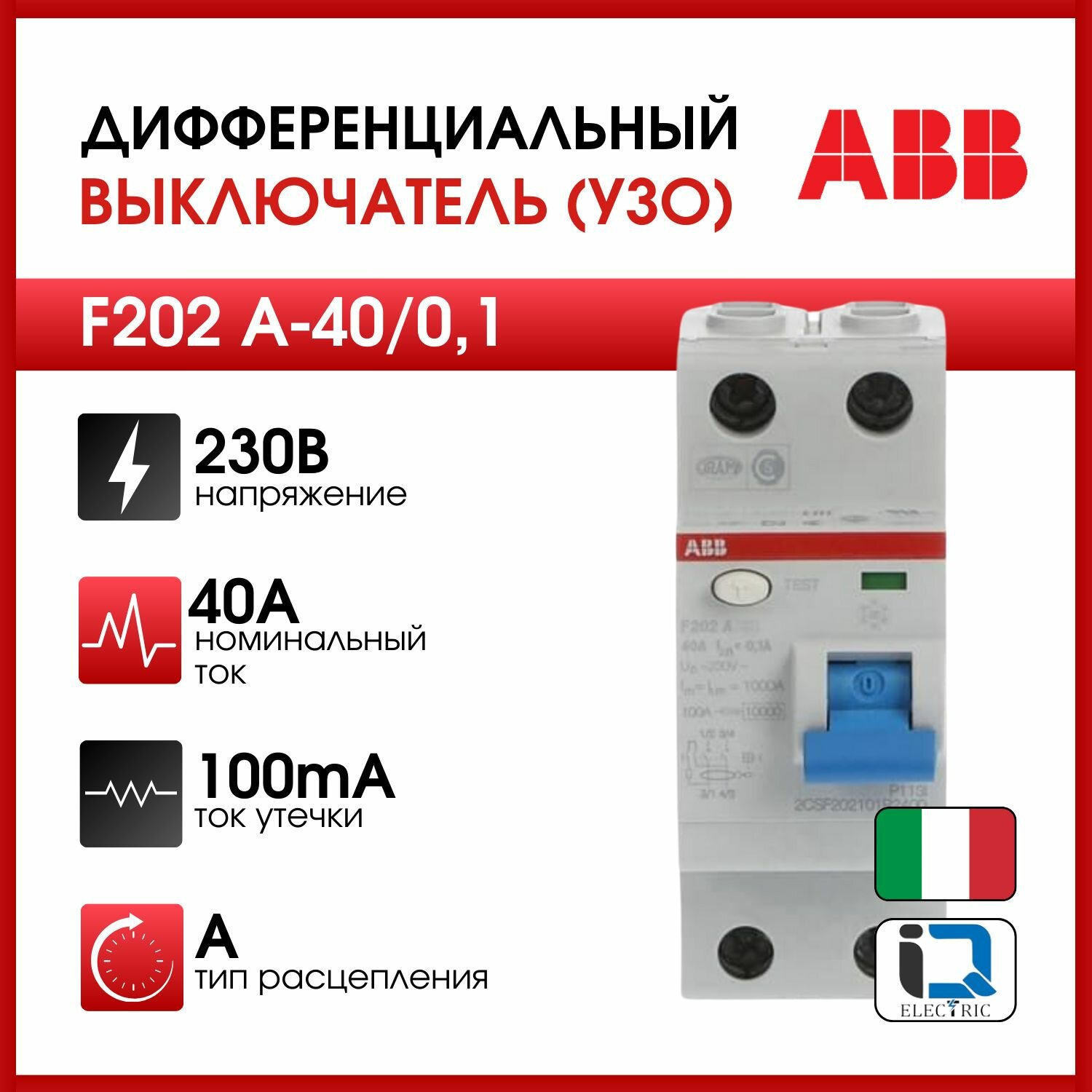 УЗО однофазное ABB F202 ТИП A 40А 30MA