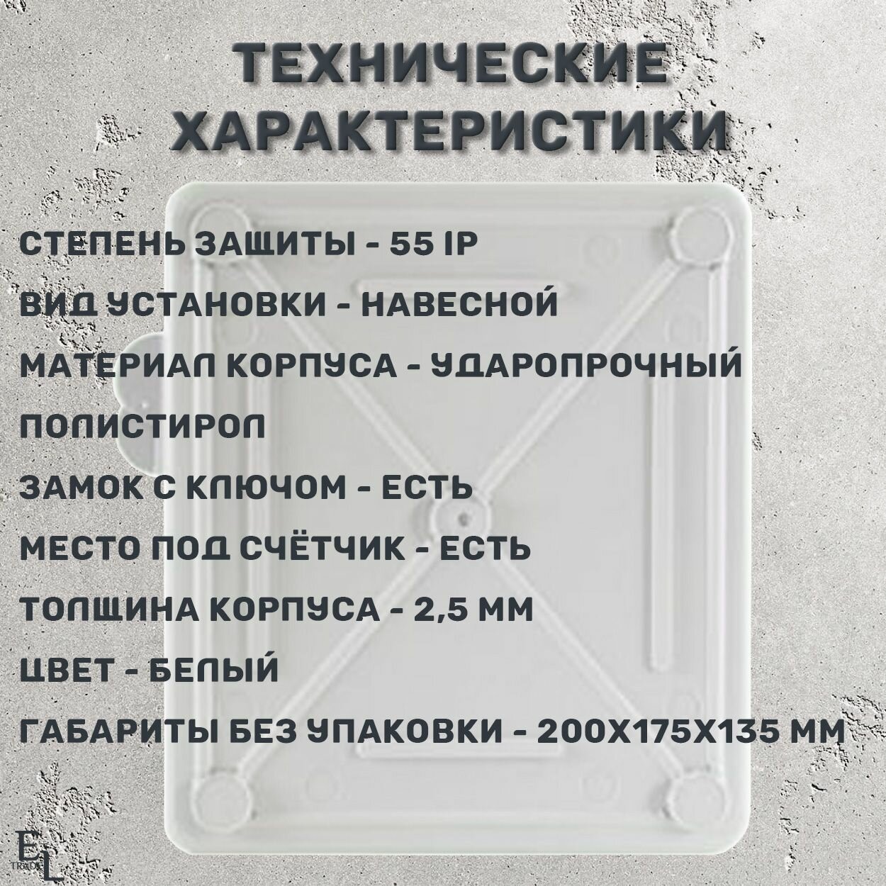 | Дополнительные функции | место под электрический счётчик, установка на открытом воздухе, замок с ключом |