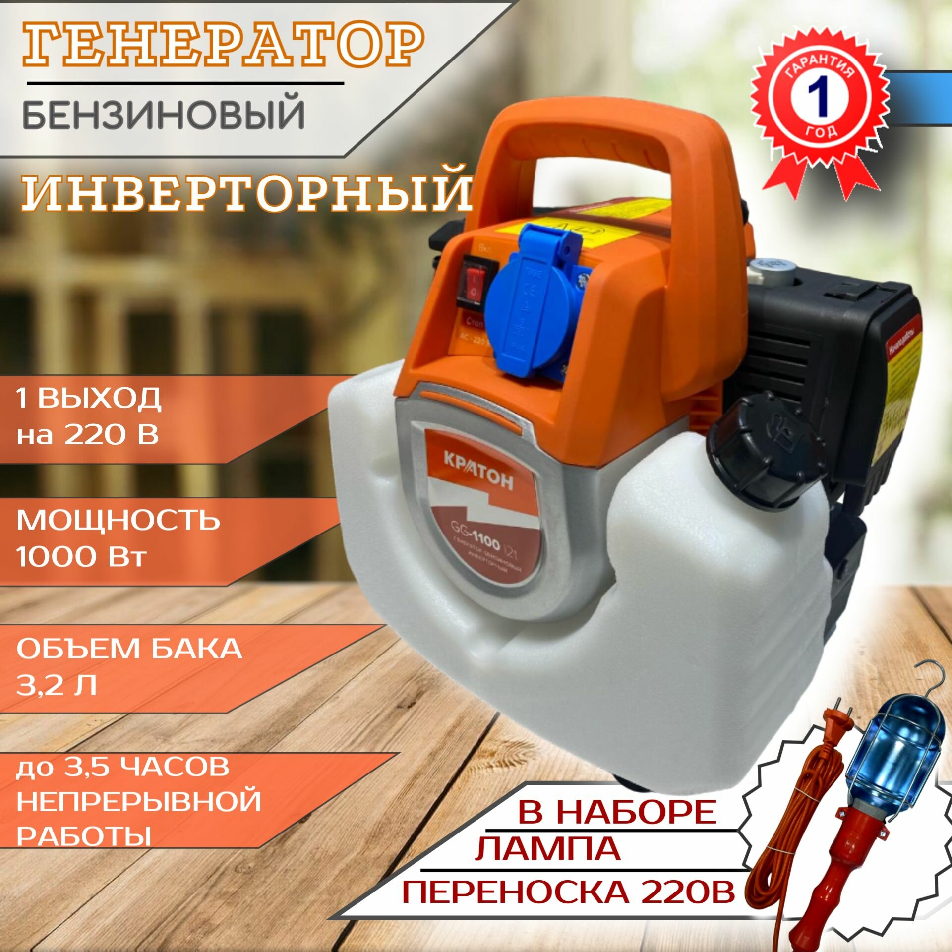 Купить Генератор бензиновый /бензогенератор 1 кВт / генератор для рыбалки, туризма инверторный + переносной светильник