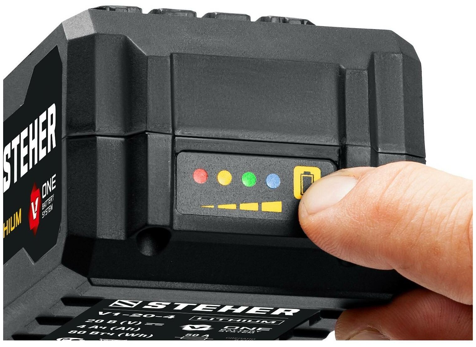 Аккумуляторная батарея STEHER 20В, 4 Ач, Li-Ion тип V1, V1-20-4 интересное: