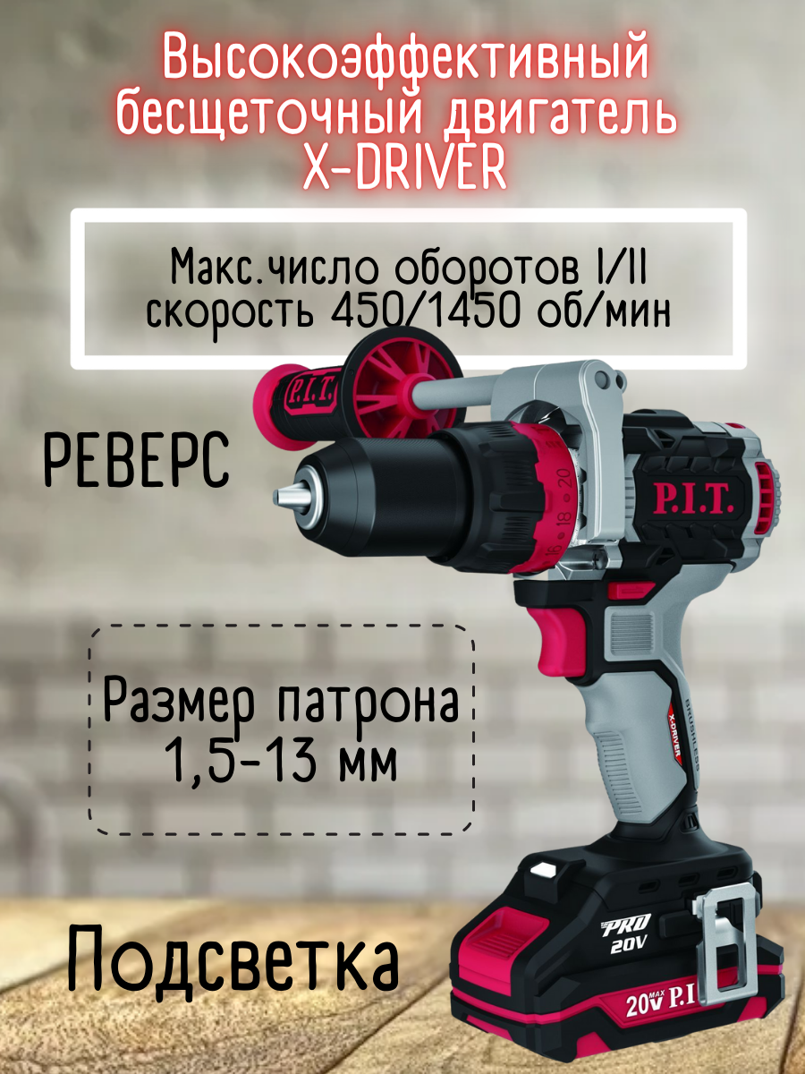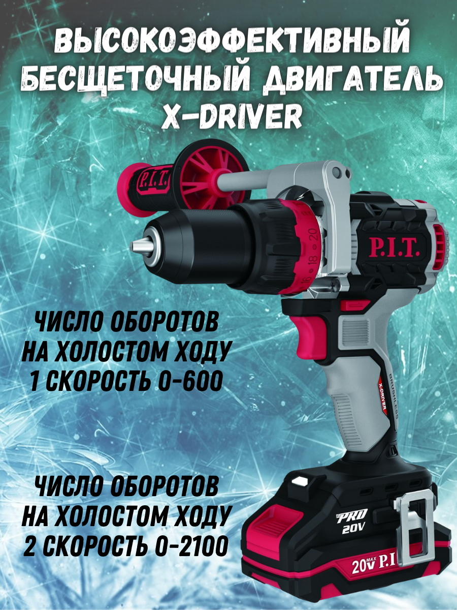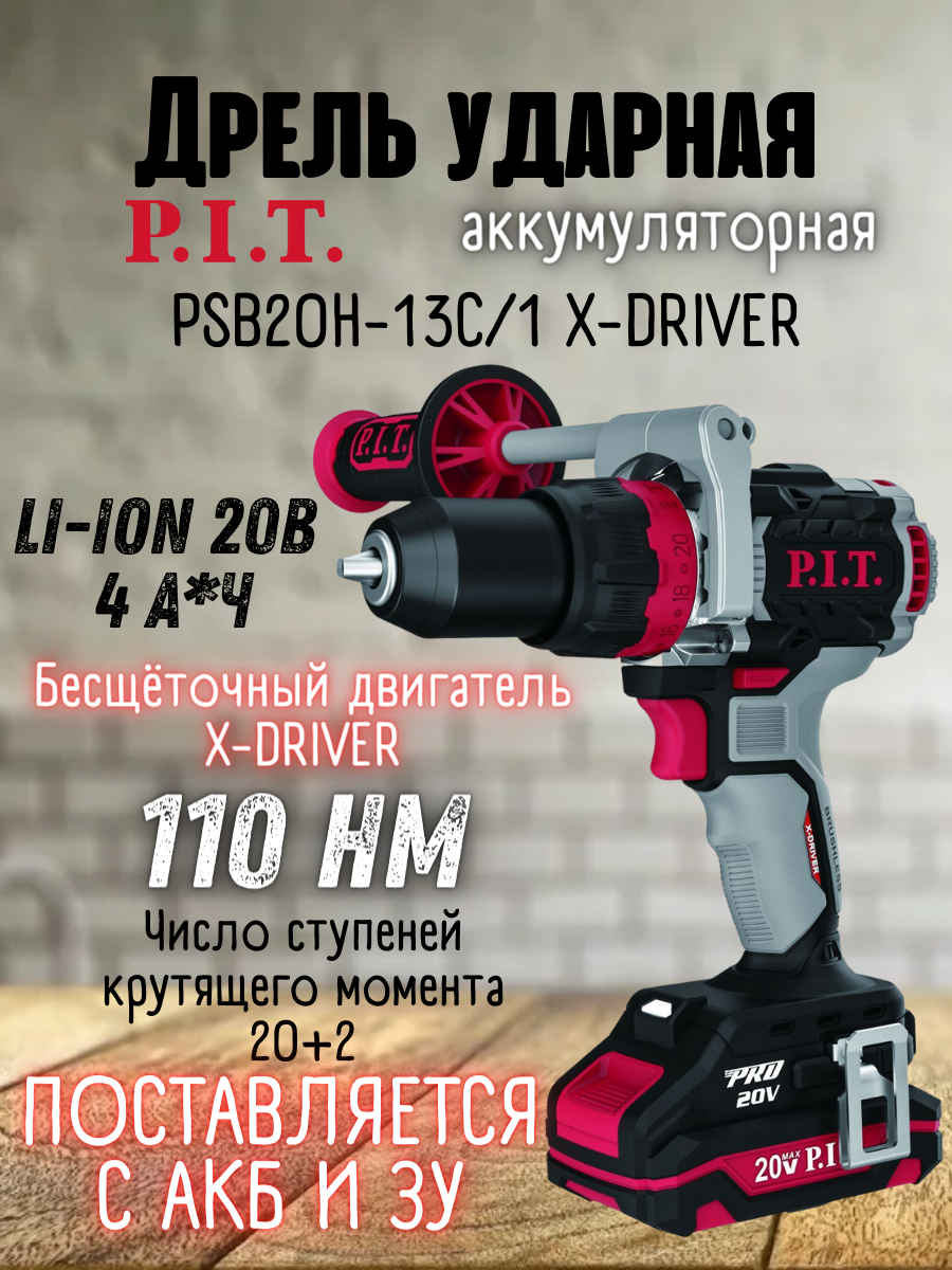 Купить Дрель ударн.бесщеточн.аккумулят. PSB20H-13C/1 X-DRIVER (20В, 110Нм,метпатрон 13мм, 2ск, 4Ач, ЗУ)