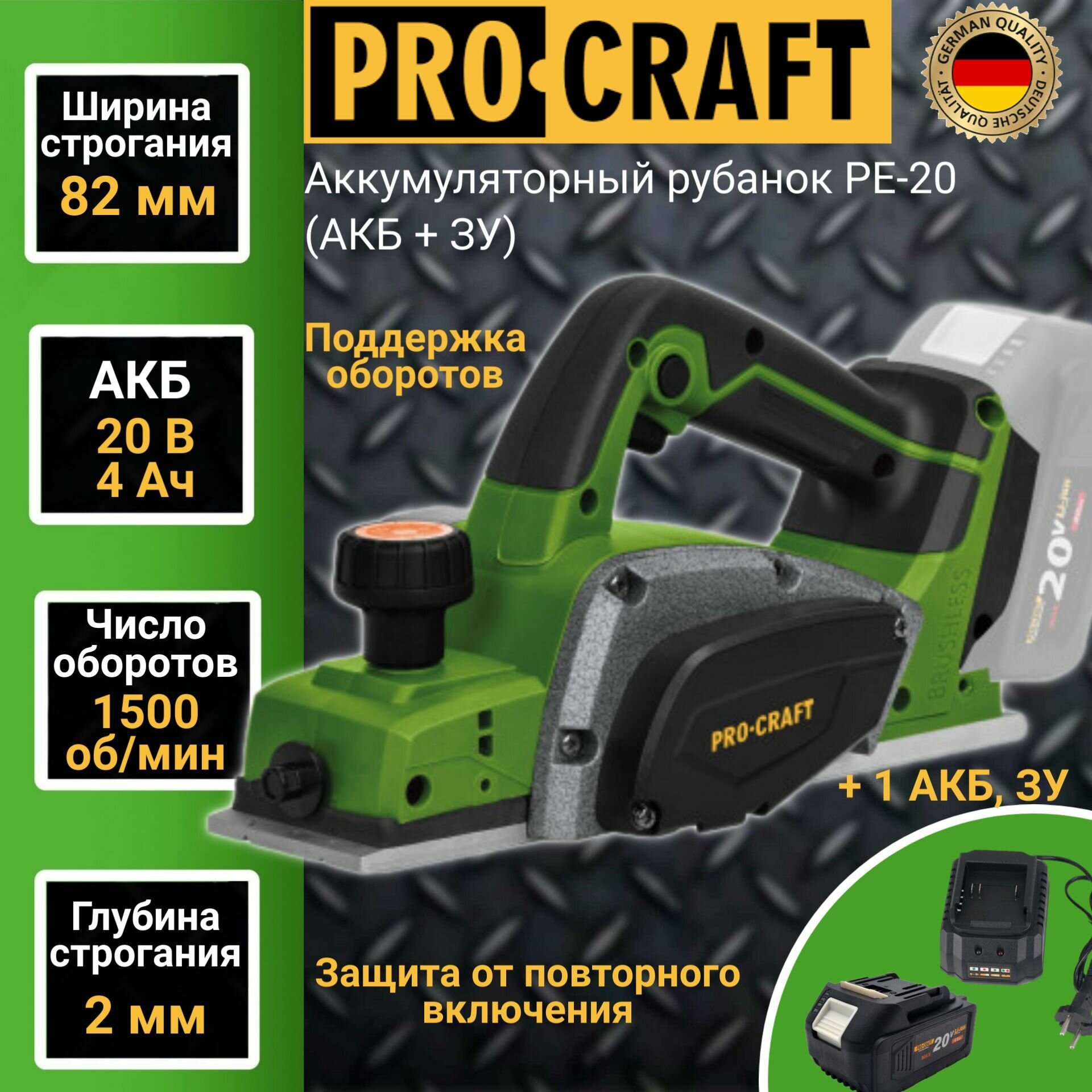 Аккумуляторный рубанок ProСraft PE-20 (АКБ +ЗУ), нож 82мм, глубина 2мм, 1500об/мин интересное: