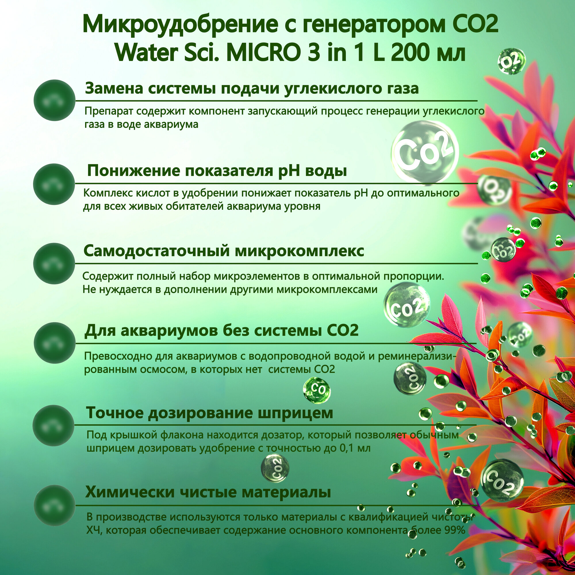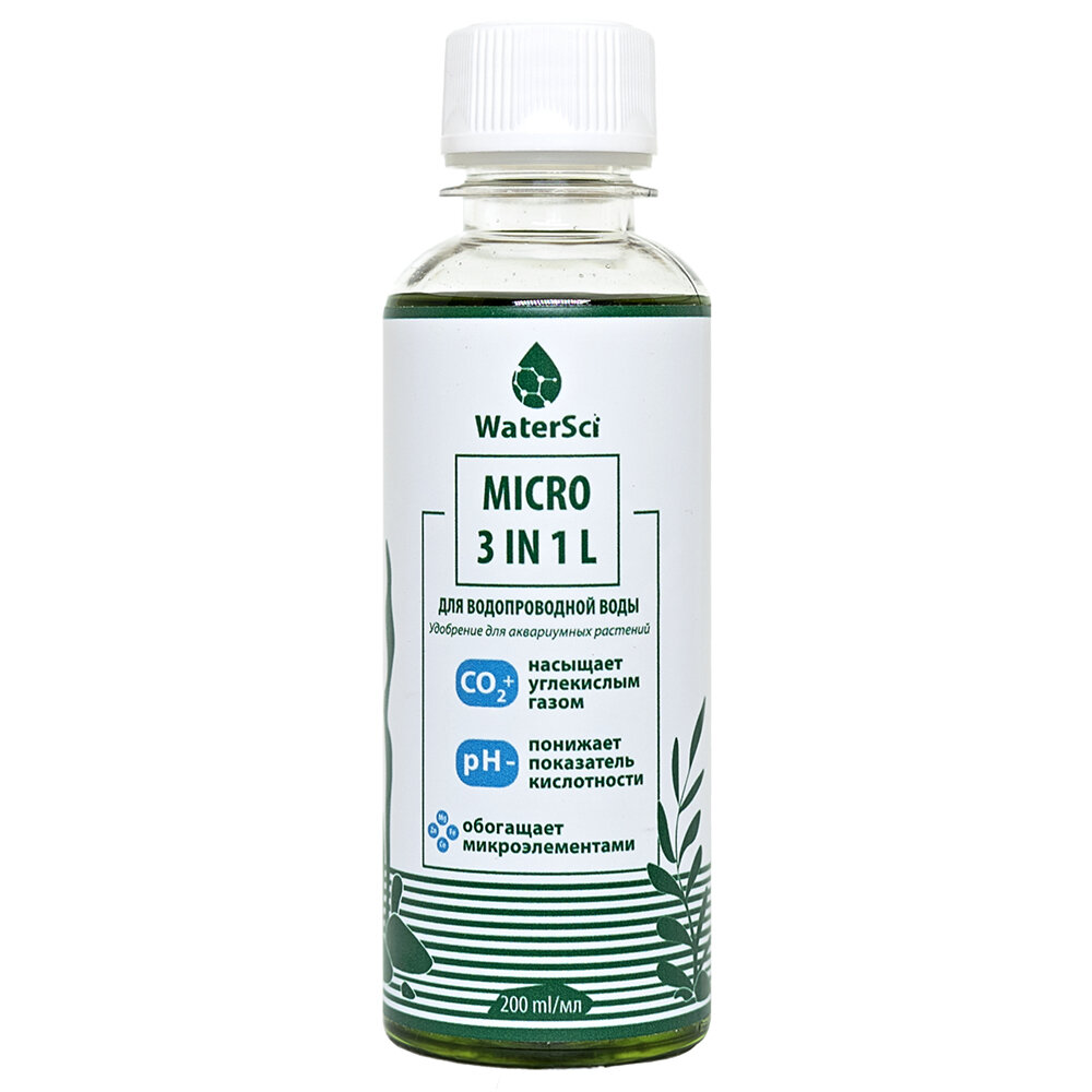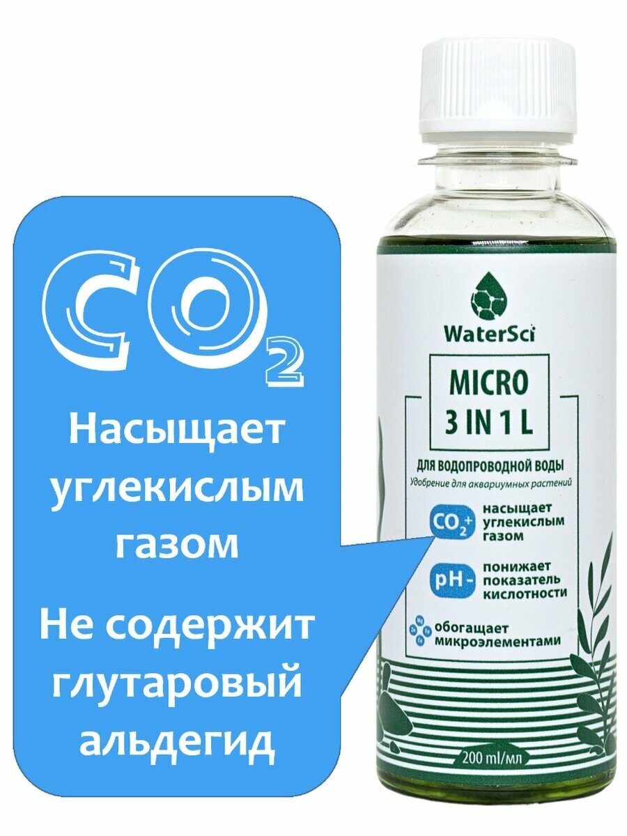 Микроудобрение с генератором СО2 Water Sci. MICRO 3 in 1 L, 200 мл. интересное: